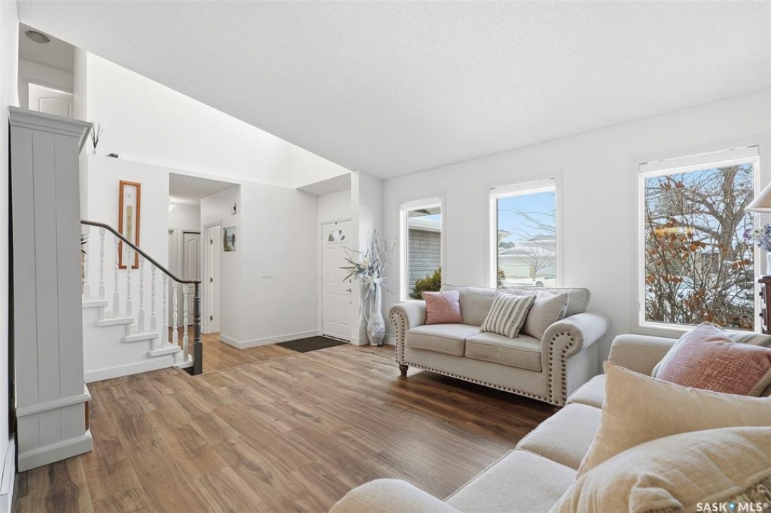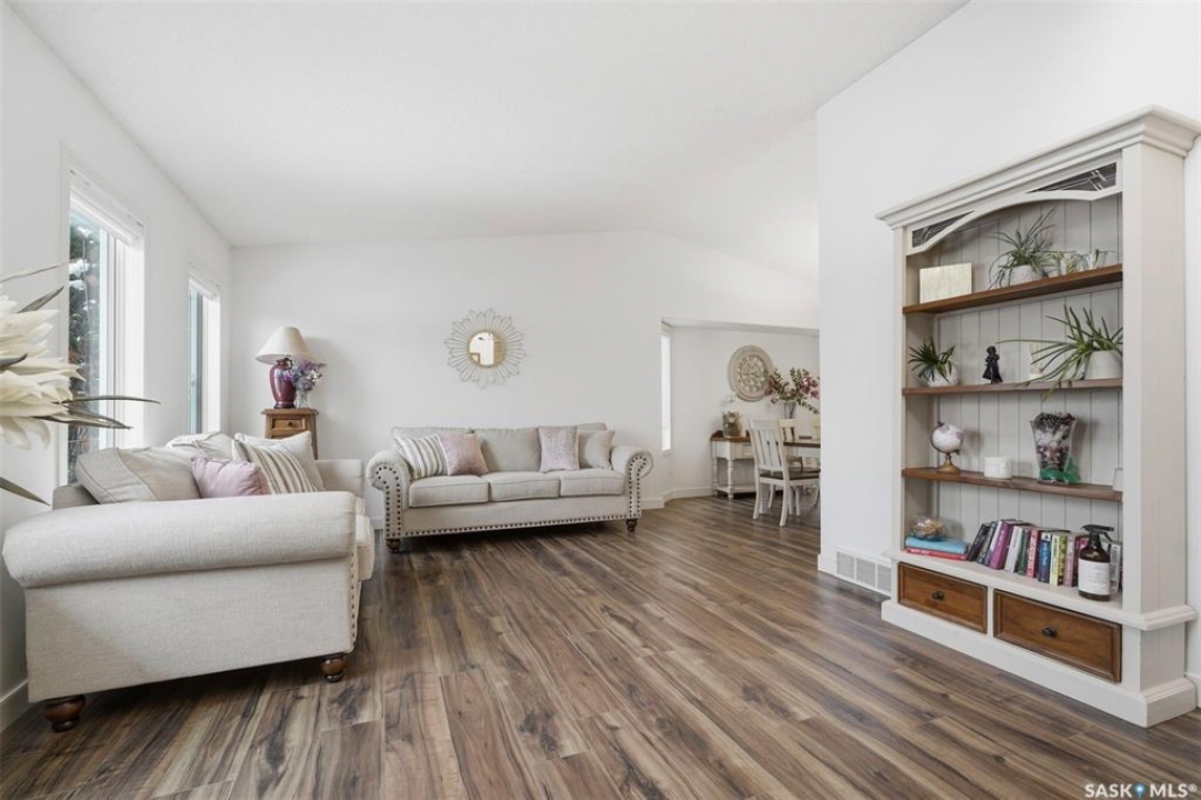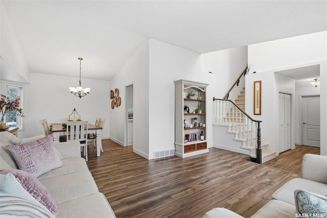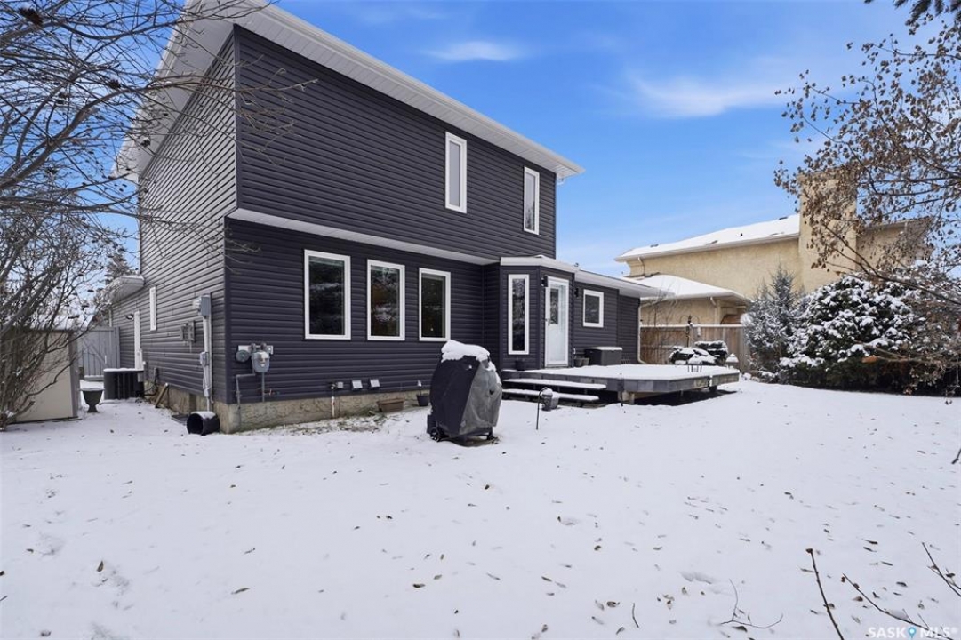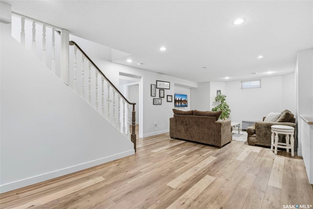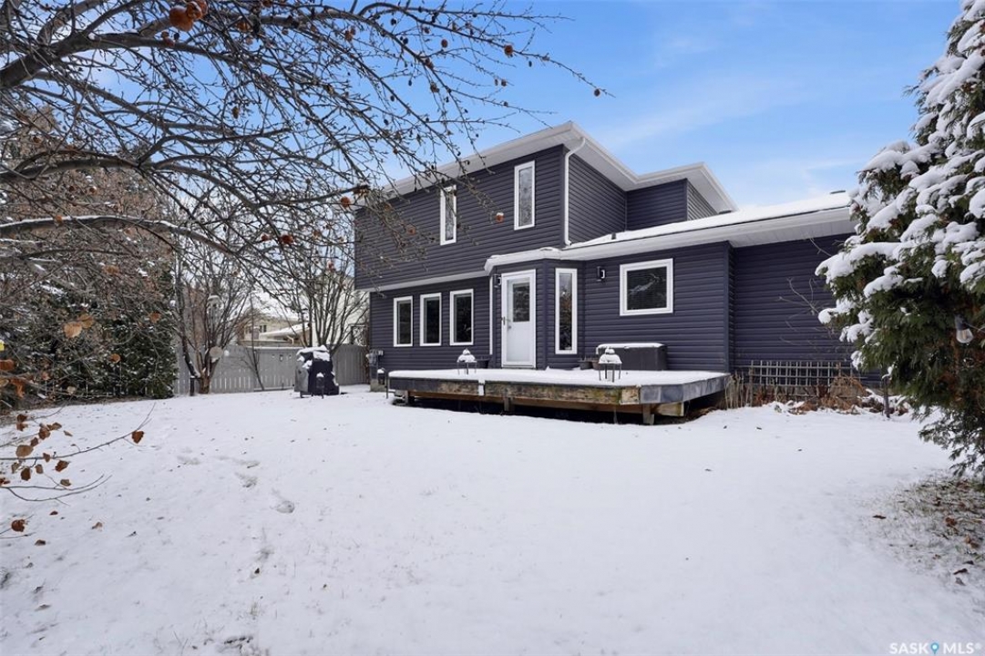 Situated on a quiet cul-de-sac in the desirable neighbourhood of Lakeridge, this beautifully maintained 1,840 sq. ft. two-storey split offers exceptional space, upgrades, and comfort for the whole family. The main floor welcomes you with a vaulted ceiling over the living and formal dining rooms, along with a remodeled kitchen featuring a peninsula, stainless steel appliances, pots & pans drawers, a wall pantry, and a pocket door leading to the formal dining area. A bayed dinette just off the kitchen includes a garden door that opens to a spacious deck overlooking the mature, fully landscaped yard with underground sprinklers. The cozy family room showcases a gas fireplace and built-in shelving, while a main floor den, 2-piece bathroom, and laundry room add convenience. The second level features a large primary suite with a generous walk-in closet and 3-piece en-suite, two additional bedrooms, and a 4-piece bathroom—each of the home's bathrooms offering in-floor heat. The fully developed lower level, renovated in 2023, provides a spacious family room and games area with built-in shelving, a wet bar, vinyl plank flooring, a bedroom, den, 3-piece bathroom, and utility/storage room. Additional updates and features include a new furnace (2021), new A/C unit (2022), new exterior siding (2023), triple-pane PVC windows, newer shingles, newer trim and doors, central vacuum with attachments, and a water softener. A 22x20 double attached garage with a newer garage door completes this move-in-ready home. The perfect blend of style, functionality, and location—don't miss your opportunity to book a private showing today!