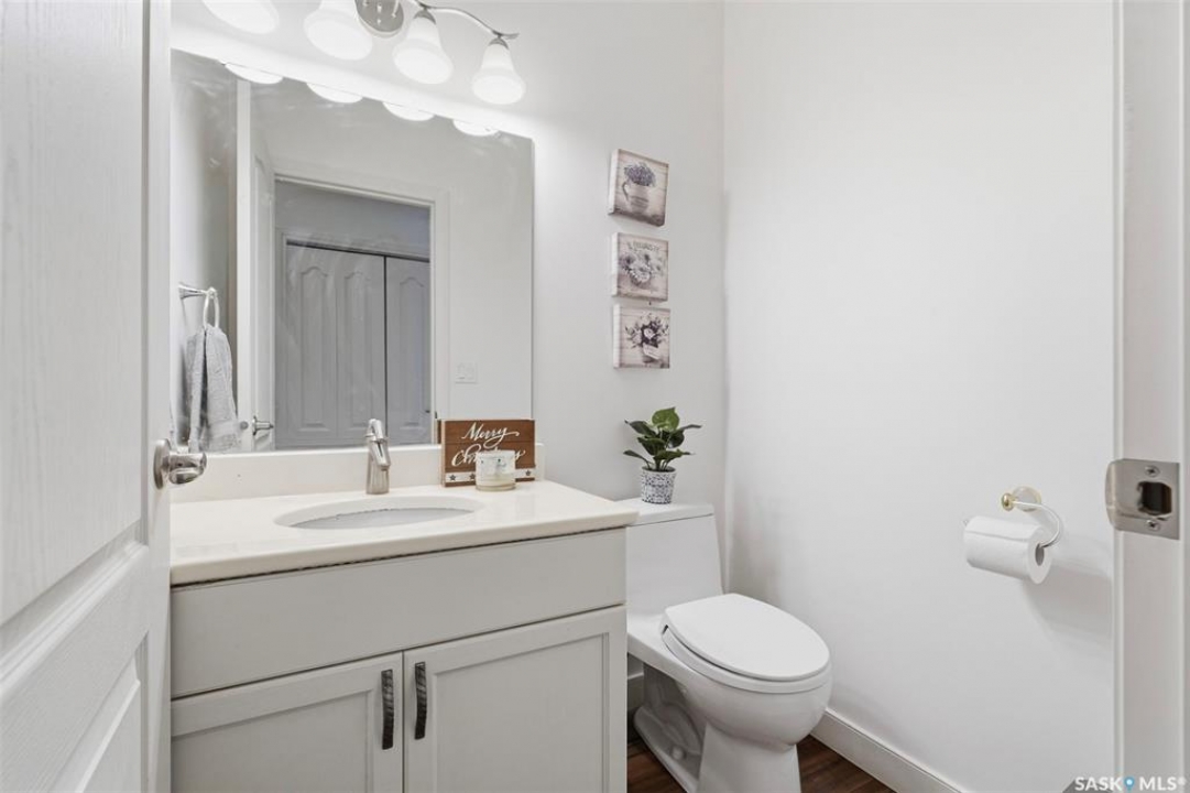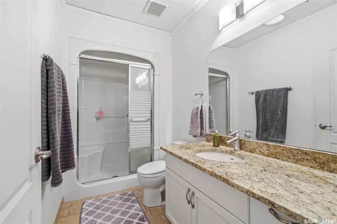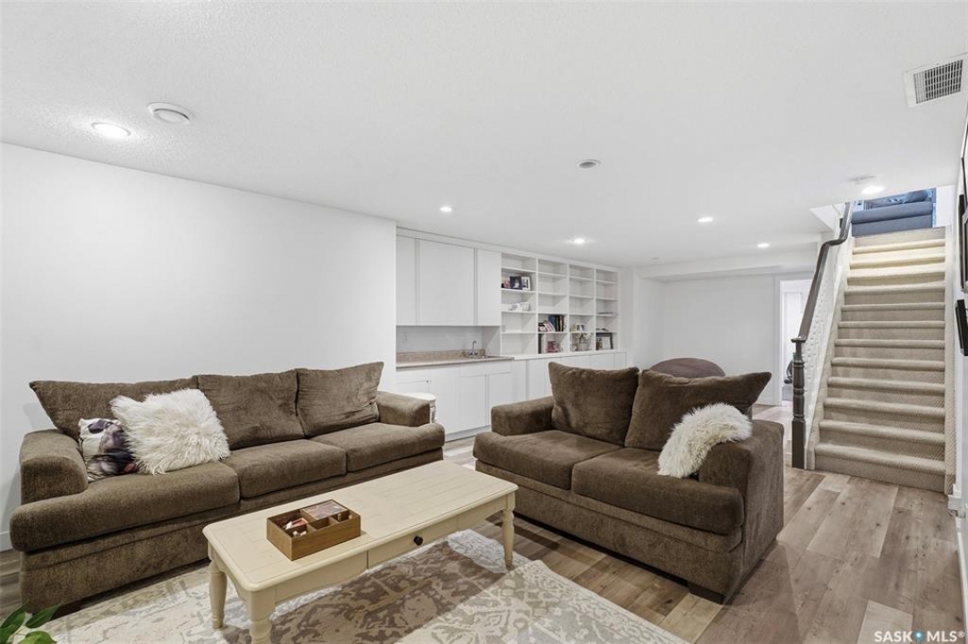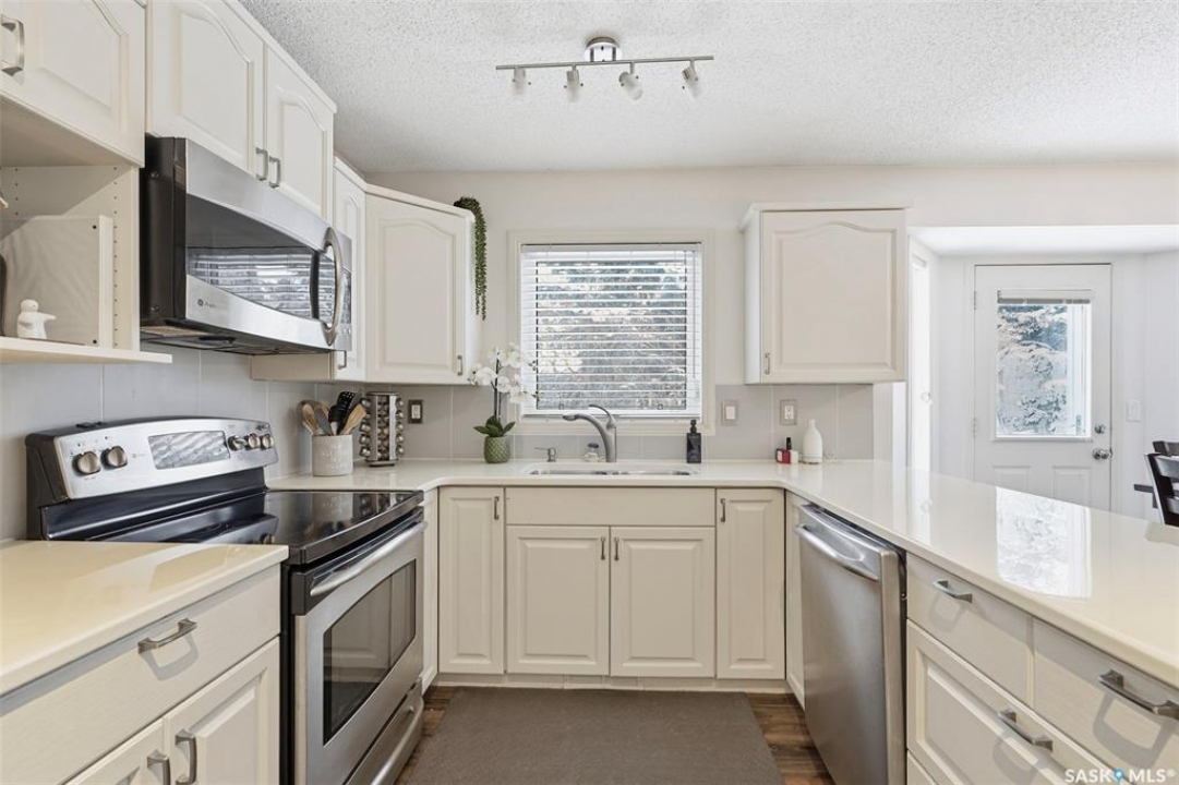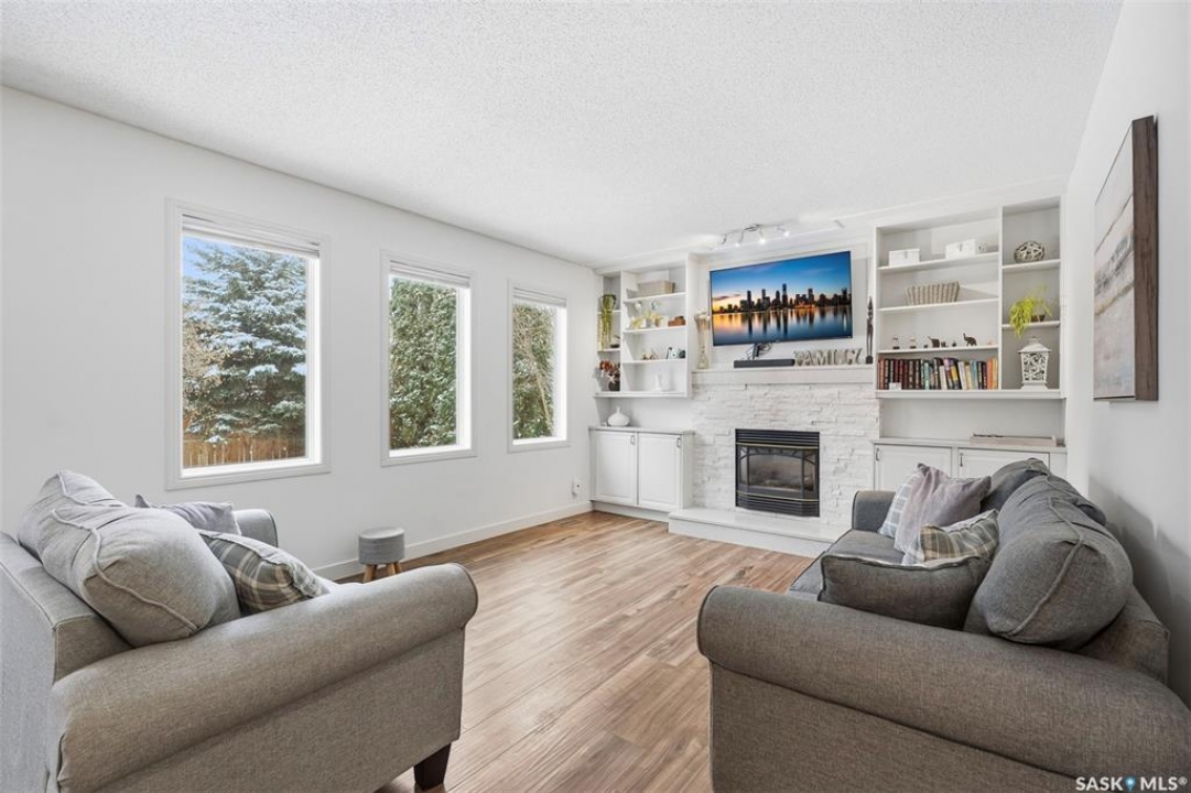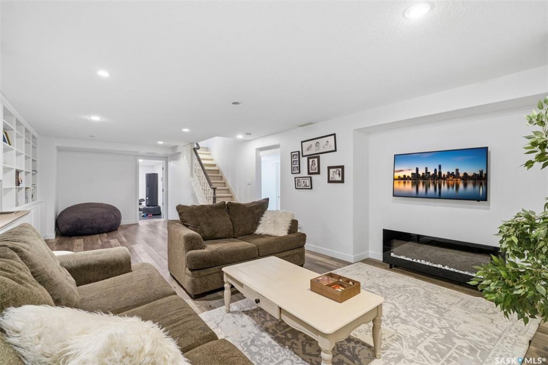 Situated on a quiet cul-de-sac in the desirable neighbourhood of Lakeridge, this beautifully maintained 1,840 sq. ft. two-storey split offers exceptional space, upgrades, and comfort for the whole family. The main floor welcomes you with a vaulted ceiling over the living and formal dining rooms, along with a remodeled kitchen featuring a peninsula, stainless steel appliances, pots & pans drawers, a wall pantry, and a pocket door leading to the formal dining area. A bayed dinette just off the kitchen includes a garden door that opens to a spacious deck overlooking the mature, fully landscaped yard with underground sprinklers. The cozy family room showcases a gas fireplace and built-in shelving, while a main floor den, 2-piece bathroom, and laundry room add convenience. The second level features a large primary suite with a generous walk-in closet and 3-piece en-suite, two additional bedrooms, and a 4-piece bathroom—each of the home's bathrooms offering in-floor heat. The fully developed lower level, renovated in 2023, provides a spacious family room and games area with built-in shelving, a wet bar, vinyl plank flooring, a bedroom, den, 3-piece bathroom, and utility/storage room. Additional updates and features include a new furnace (2021), new A/C unit (2022), new exterior siding (2023), triple-pane PVC windows, newer shingles, newer trim and doors, central vacuum with attachments, and a water softener. A 22x20 double attached garage with a newer garage door completes this move-in-ready home. The perfect blend of style, functionality, and location—don't miss your opportunity to book a private showing today!
