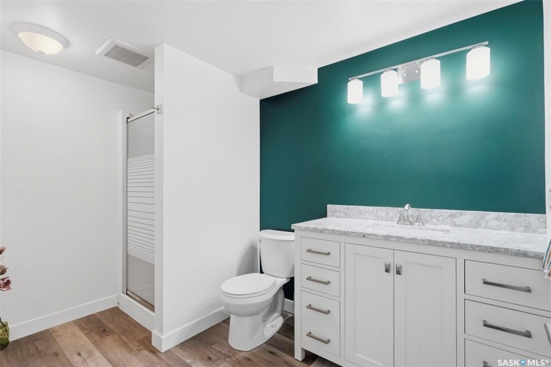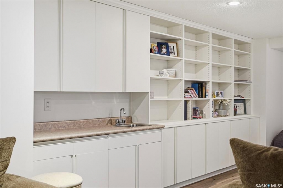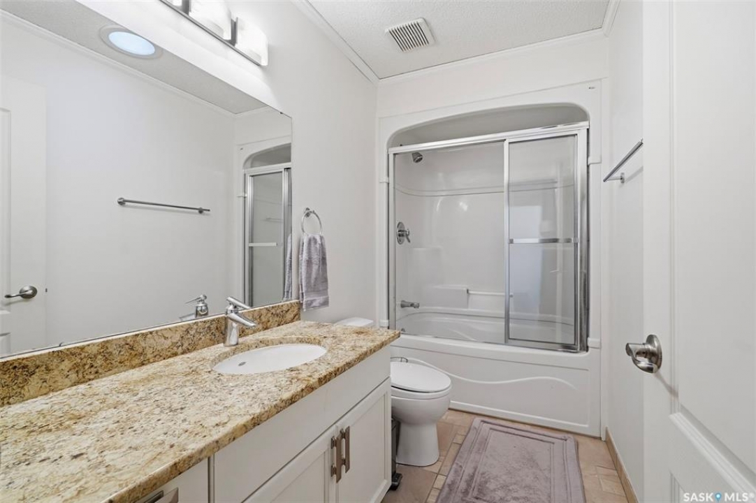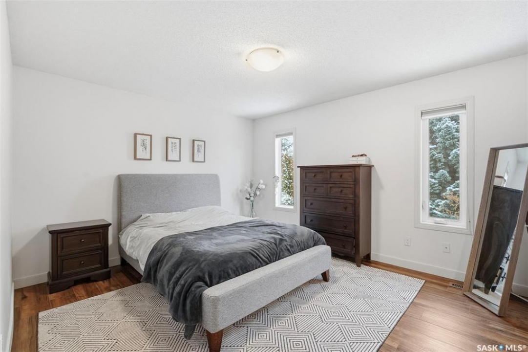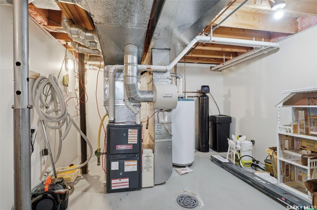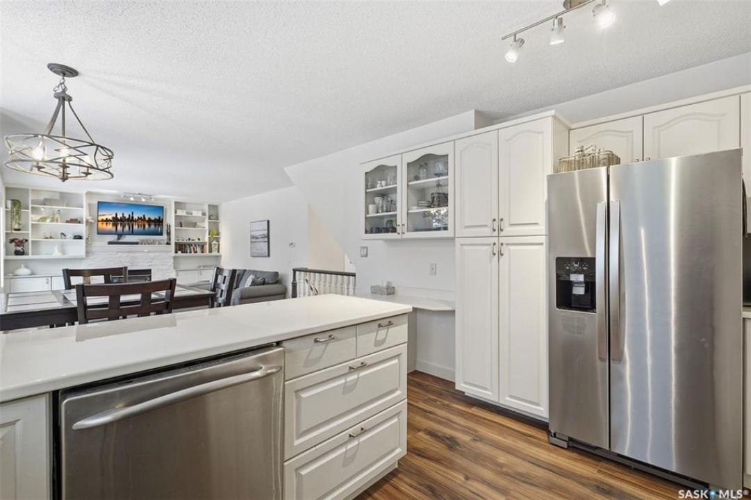 Situated on a quiet cul-de-sac in the desirable neighbourhood of Lakeridge, this beautifully maintained 1,840 sq. ft. two-storey split offers exceptional space, upgrades, and comfort for the whole family. The main floor welcomes you with a vaulted ceiling over the living and formal dining rooms, along with a remodeled kitchen featuring a peninsula, stainless steel appliances, pots & pans drawers, a wall pantry, and a pocket door leading to the formal dining area. A bayed dinette just off the kitchen includes a garden door that opens to a spacious deck overlooking the mature, fully landscaped yard with underground sprinklers. The cozy family room showcases a gas fireplace and built-in shelving, while a main floor den, 2-piece bathroom, and laundry room add convenience. The second level features a large primary suite with a generous walk-in closet and 3-piece en-suite, two additional bedrooms, and a 4-piece bathroom—each of the home's bathrooms offering in-floor heat. The fully developed lower level, renovated in 2023, provides a spacious family room and games area with built-in shelving, a wet bar, vinyl plank flooring, a bedroom, den, 3-piece bathroom, and utility/storage room. Additional updates and features include a new furnace (2021), new A/C unit (2022), new exterior siding (2023), triple-pane PVC windows, newer shingles, newer trim and doors, central vacuum with attachments, and a water softener. A 22x20 double attached garage with a newer garage door completes this move-in-ready home. The perfect blend of style, functionality, and location—don't miss your opportunity to book a private showing today!