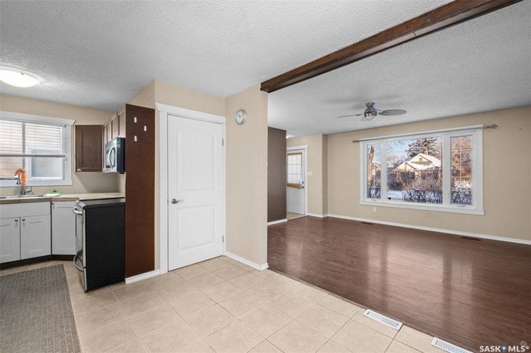 This inviting 2 bedroom duplex is located in a great East Flat area and offers a bright main level and a basement that is ready for future development. The main floor welcomes you with a spacious living room that features a large picture window that fills the space with natural light. The living room flows seamlessly into the dining area and kitchen, where you will find stainless steel appliances and durable ceramic tile flooring that adds both style and function. Two comfortable bedrooms and a stylish 4 piece bathroom complete the main floor. The lower level includes a large unfinished basement that provides excellent storage and is ready to be transformed to suit your needs. Enjoy a fully fenced yard ideal for pets, kids or outdoor relaxation along with convenient off street parking accessible from the back alley. Close to schools, parks, Sask Polytechnic and Cornerstone shopping and offers great value for buyers or investors. Act now and book your showing today!