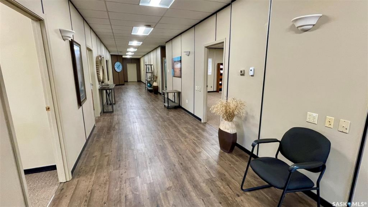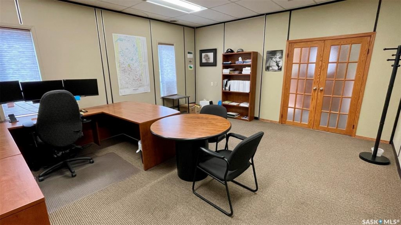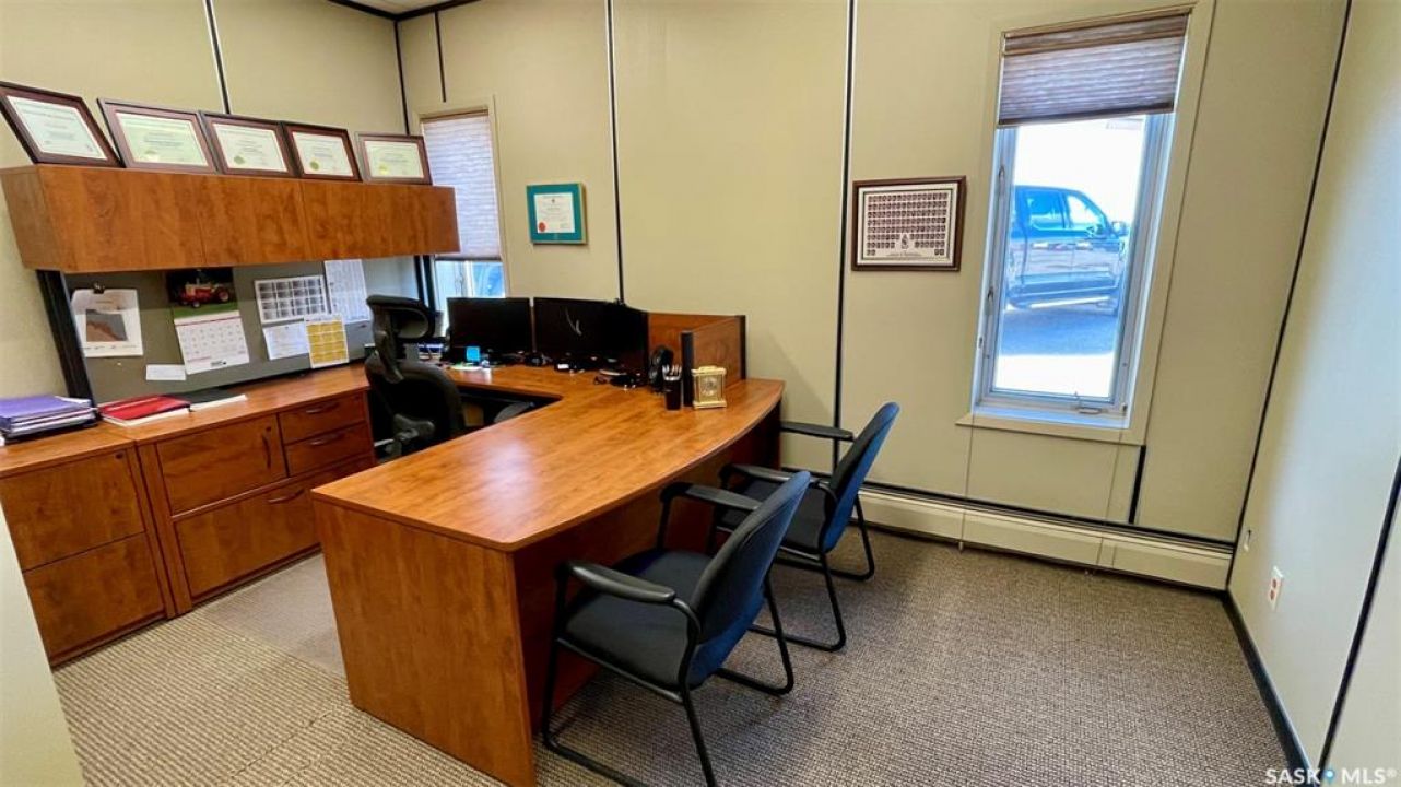 Investment Property with Optional Lease at $40,000/Year – Flexible Opportunity in Biggar This 5,100 sq. ft. office building in the heart of Biggar offers an outstanding investment opportunity, with the seller willing to lease the property at $40,000/year for a 3-year term, with an option to renew. This structure provides immediate cash flow, a stable long-term tenant, and attractive returns for investors seeking income-producing commercial real estate in a strong agricultural region. Biggar has recently completed a $7.5 million revitalization of its downtown, modernizing infrastructure, streetscapes, lighting, and commercial-area amenities. This significant municipal investment is contributing to increased economic activity, higher business engagement, and renewed commercial interest, enhancing the long-term strength and stability of the town for outside investors. The building includes 8 private offices, a large boardroom, reception area, kitchen, technology room, two bathrooms, two rear storage rooms, and a warehouse with an overhead door. Solid concrete block construction, paved parking, upgraded electrical, lighting, and flooring, and a flexible interior layout make this a turnkey commercial space with low ongoing maintenance requirements. While ideally positioned for an investor, the property also suits owner-occupiers requiring office, professional, service, or mixed-use space. Vacant possession can be provided. Located on 3rd Avenue West (C1 zoning) with excellent visibility and convenient access, this property offers both reliable income potential and functional commercial space in one of Saskatchewan's most active and forward-looking regional centres.