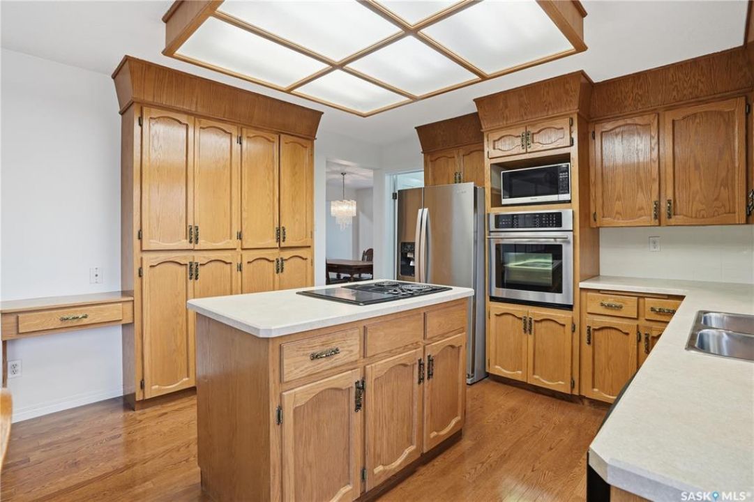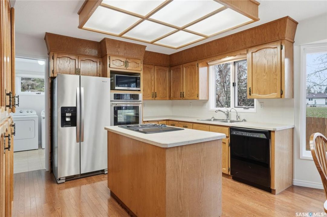 This property presents a rare opportunity on a large, park backing, Cul-D-Sac located 2063 sq/ft family home. Features large living room & dining room, spacious bright kitchen with built-in range top and oven. Big eating area, family room with fireplace. Main floor laundry and 2 piece bath by back door, hardwood throughout main except laundry and bath. 4 bedrooms up with hardwood floors, as well as 2 bathrooms on the 2nd floor. The primary bedroom has a door to a deck overlooking the park, 3 piece ensuite with sit down shower, Boeing style tub in main bath. Basement development with large rec room, games area, huge den, 4 piece bath with jetted tub. Large storage in furnace area. Double attached garage with two doors. Spacious wedge shape lot backing onto the park. Smoke and pet free home E. & O.E.