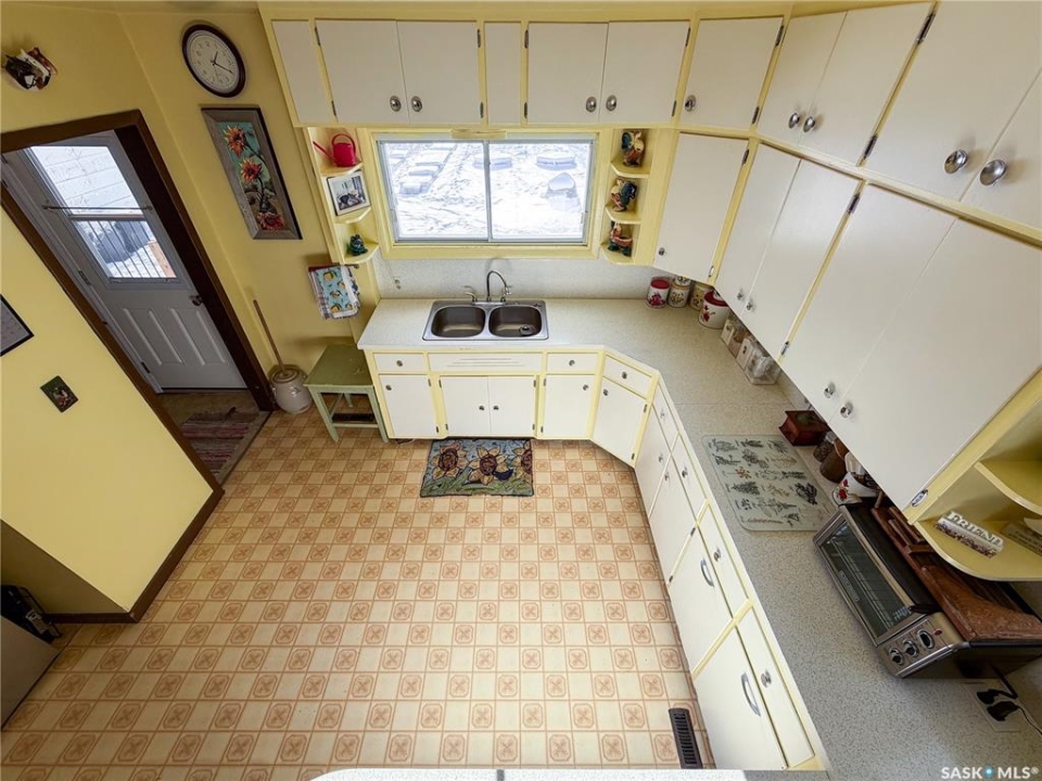Welcome to 610 Railway Street in Eastend — a charming 4-bedroom, 2-bathroom bungalow with stunning backyard views and a lifestyle rooted in peace, space, and small-town charm. Set on a generous 15,000 sq. ft. lot with no back neighbours, this 1,070 sq. ft. home offers direct access to walking trails and scenic views of the old railway line — a rare combination that gives you both privacy and natural beauty right out your back door. With a single detached garage and two separate driveways—one on each side of the home—you'll have more than enough space for parking, guests, or extra vehicles. Step inside to a sun-soaked main floor living room with plenty of natural light, setting the tone for a warm and welcoming layout. To the right, you'll find the kitchen and dining area, complete with a built-in china cabinet and stainless steel appliances, including a gas stove (2017) and fridge (2021). The cabinetry offers abundant storage, and the dining space is ideal for everyday meals or hosting loved ones. The main floor also includes two well-sized bedrooms and a 4-piece bathroom, making for a practical and cozy layout. Downstairs, the fully developed basement adds two additional bedrooms, a renovated 3-piece bathroom (2022), and a spacious family room with a newly installed gas fireplace (2024) — perfect for keeping warm and comfortable even during power outage. You'll also find a high-efficiency furnace (2017), newer water heater (approx. 2020), cold storage, large storage room, and laundry area with washer & dryer (2018) — ticking all the boxes for practical daily living. The backyard is a dream for gardeners, pet lovers, and families alike. With a newer veranda(2023), raised garden beds (2023), a storage shed, and firepit, this outdoor space offers tons of room to relax, play, or grow your own food. Gated access from both sides of the property and a gate at the back make the yard as functional as it is beautiful. Updated metal roof on home & garage in 2023.
