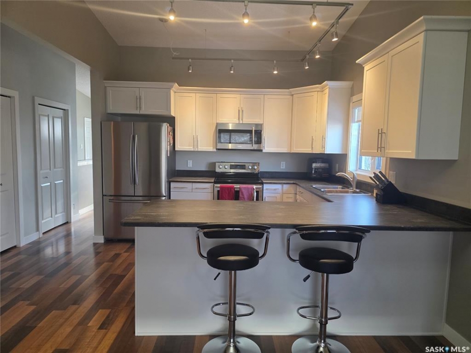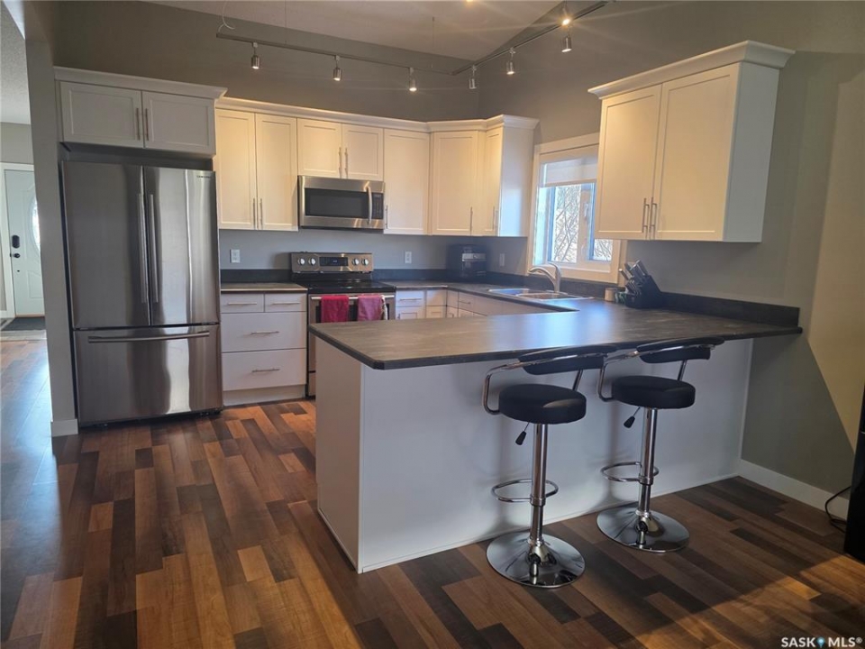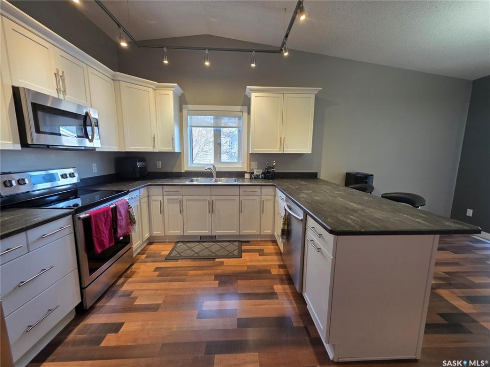 Welcome to this well-maintained 1,172 sq. ft. bungalow, built in 1986 and located in a highly desirable neighbourhood near many amenities. Move-in ready and inviting, this home allows you to simply bring your belongings, settle in, and enjoy. Offering five bedrooms and two bathrooms, the home provides plenty of space for families or anyone needing extra room. The main floor features a bright and spacious kitchen with an abundance of white cabinetry, stainless steel appliances, and a centre island that comfortably seats three to four people. The adjoining dining area offers easy access to the backyard through a patio door that leads to an updated composite deck with privacy walls, warm patio lighting, and a hot tub directly off the deck—perfect for relaxing evenings or entertaining guests. The fully finished basement includes plush carpeting, a large family room, two well-sized bedrooms, a full bathroom, and laundry located in the utility area. Throughout the home you'll find generous closet space, adding to its overall functionality and convenience. Outside, the landscaped and fully fenced yard features a dedicated firepit area and back alley access with enough room to build a second garage if desired. Additional highlights include direct access to the attached garage and a concrete driveway. This property is the complete package—comfortable, updated, and ideally situated. Book your showing today and experience everything this home has to offer.