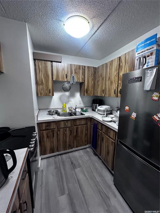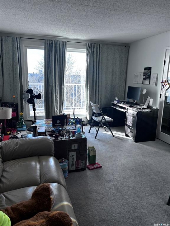 Top floor condo unit located in The Sunset Towers. Building offers an inviting atmosphere and residents have access to an amenities room directly off the lobby. Unit has a spacious living room with large sliding doors to the west facing balcony with an abundance of natural light. French doors lead to a bedroom that could also be used as an office. Kitchen features newer vinyl plank flooring and stainless steel appliances which are included. Unit also offers a second bedroom, 4 piece bathroom and in suite storage. Laundry is conveniently located across the hall for easy access. Located close to all north end amenities including a grocery store, restaurants and mall.