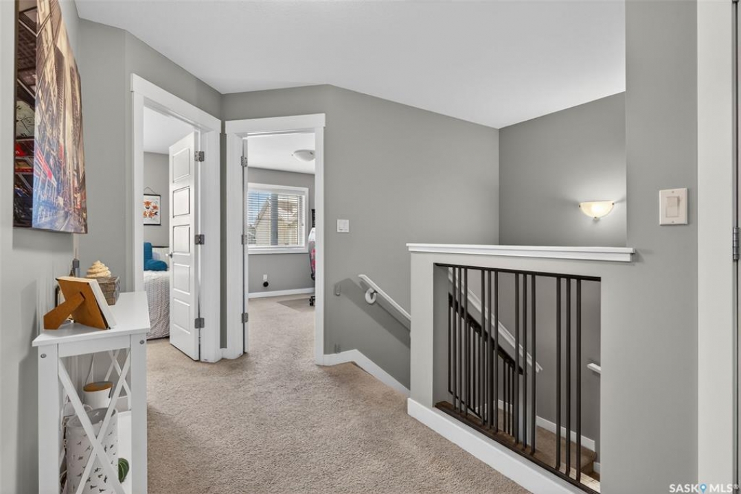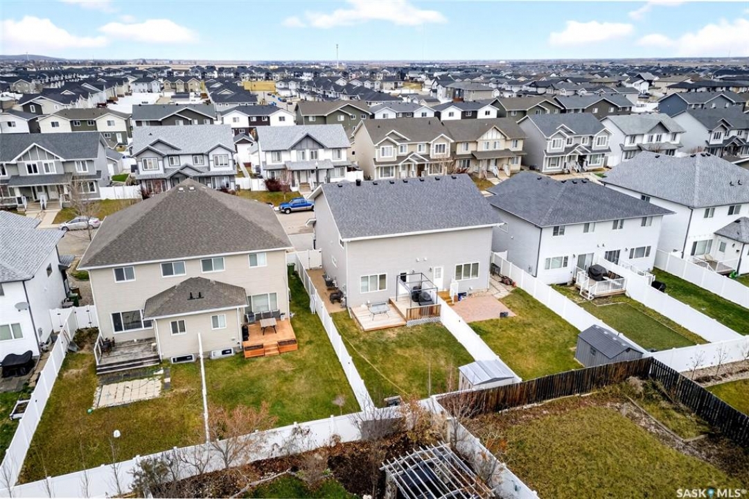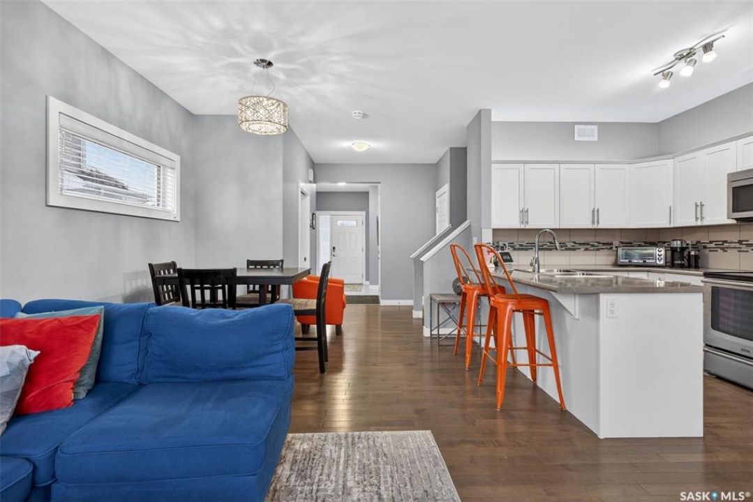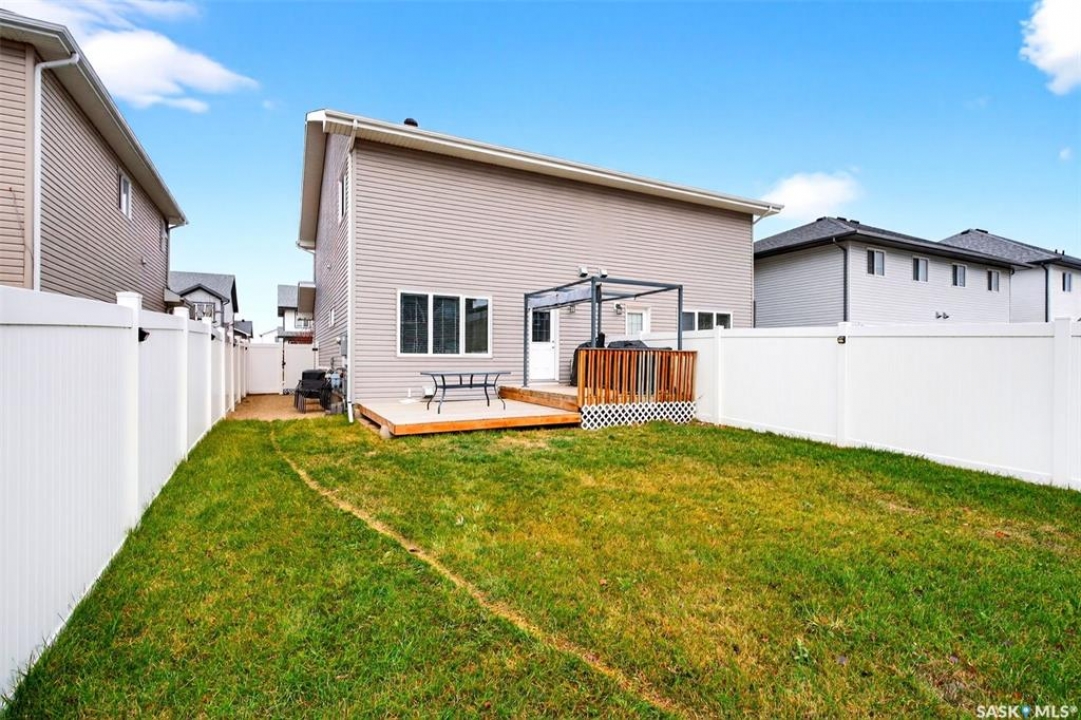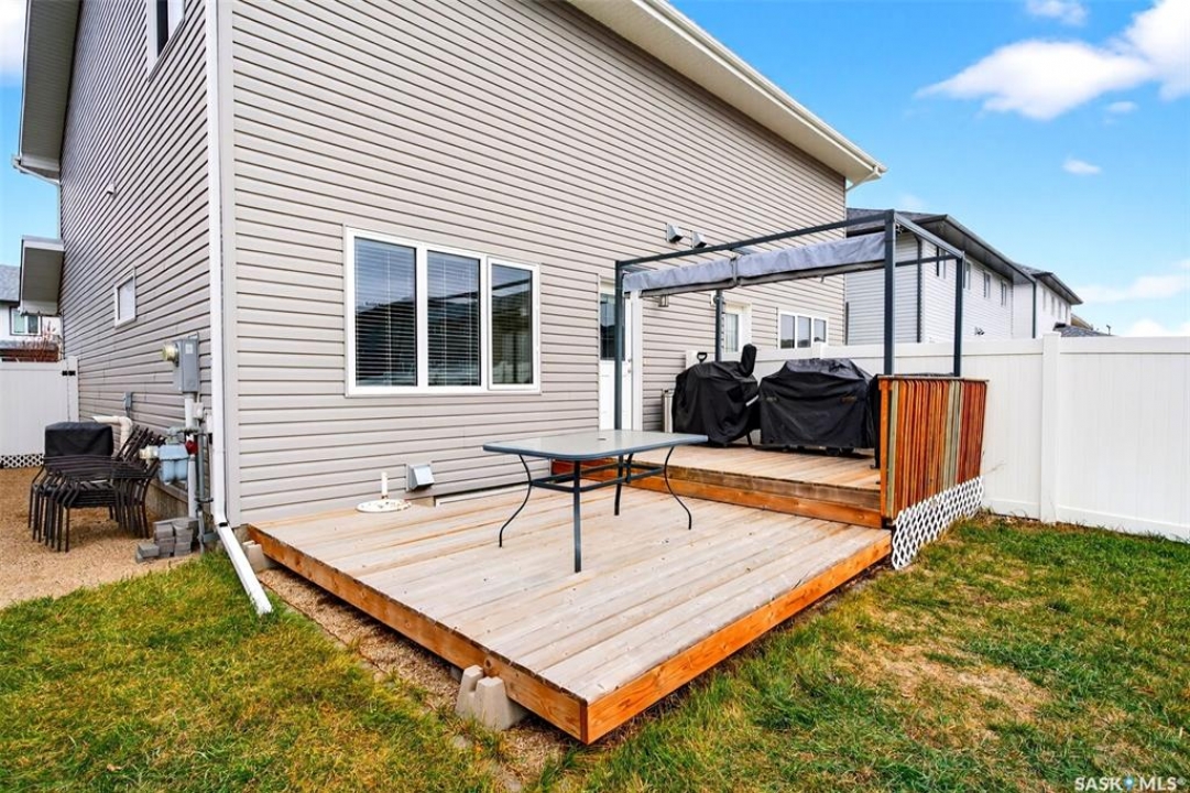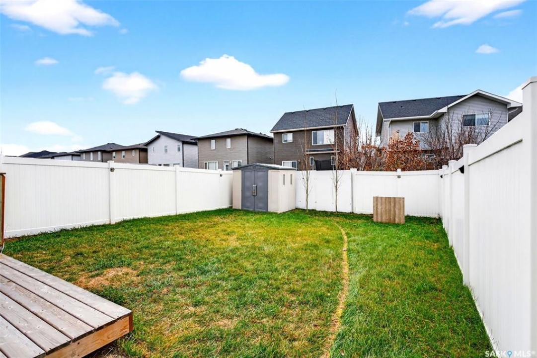 Welcome home to 4533 Green Rock Road E perfectly positioned in our vibrant Greens on Gardiner neighbourhood in Regina SK. This stunning 2014 built, 2-storey half duplex with NO CONDO fees features a stellar 1384SQFT floorplan maximizing functionality & modern comforts with 3 bedrooms, 3 bathrooms, a second-floor laundry room, finished basement space + a single attached garage (w/additional parking)! Welcoming curb appeal leads into a spacious foyer w/closet + a built-in organizer & bench seating. Opening into an open concept main floor w/9ft ceilings, an abundance of natural light & storage galore! The dining rm easily fits a nice size table, adjacent to the comfortably sized living rm w/south facing views of your backyard. This kitchen offers a closet pantry, SS appliances, top-cabinet lighting, soft close cabinetry, & a peninsula style island. Finishing the main are a � bath & direct access off the kitchen area to the two-tiered deck & fully landscaped + fenced (vinyl) yard. Upstairs there are two good sized secondary bedrooms, a full bathroom w/tiled floor, full size vanity & tiled tub/shower insert. The primary bedroom features a super-sized WIC & 3PCE ensuite! Plus there is a dedicated laundry room w/upper cabinets & hanging rod. The basement has been designed to maximize entertainment space w/a large rec room (perfect for games night!), nook area to cozy up and read a book in, & extra storage space under the stairs or in the utility room. You can develop a 4th bathroom if desired, as there is R/I plumbing in place! Perks: Triple Pane Windows, Garage w/direct access to home (electric heat + 220V plug), Central Air (2021), Shed, Pergola, Window treatments/Appliances included (Rented Water Heater/Softener). Such a convenient location you can choose to walk, drive or bike (when there isn't snow on the ground) to schools, parks, Everyday Kitchen, Shopping Centres (Costco & Acre 21) & so much more. This home is ready for you to move in and start making memories!