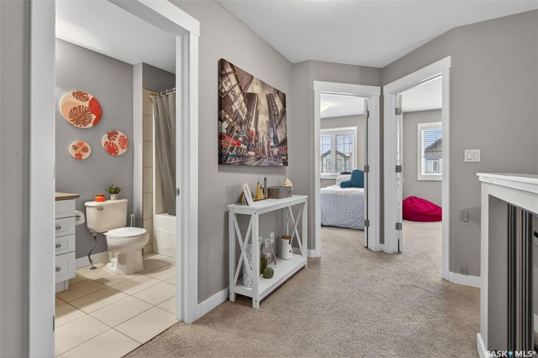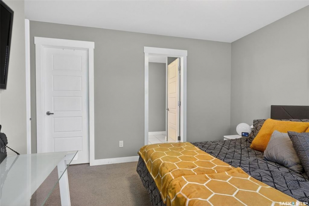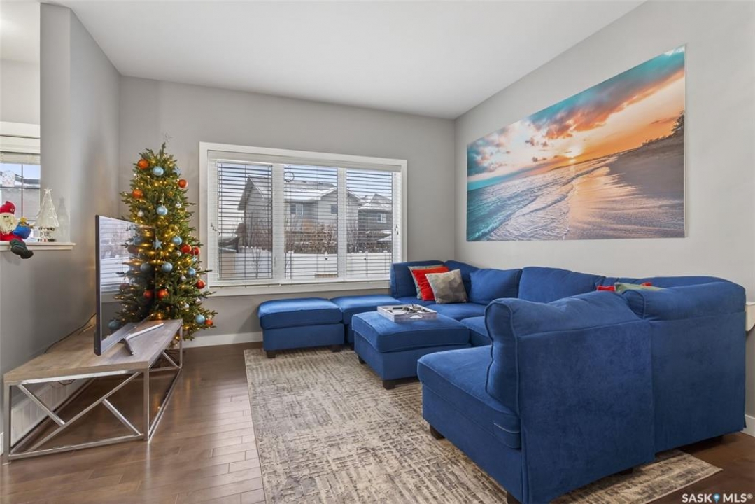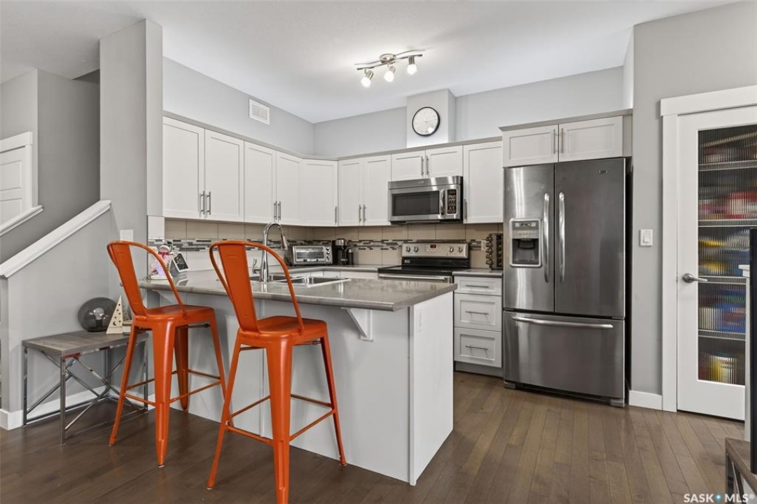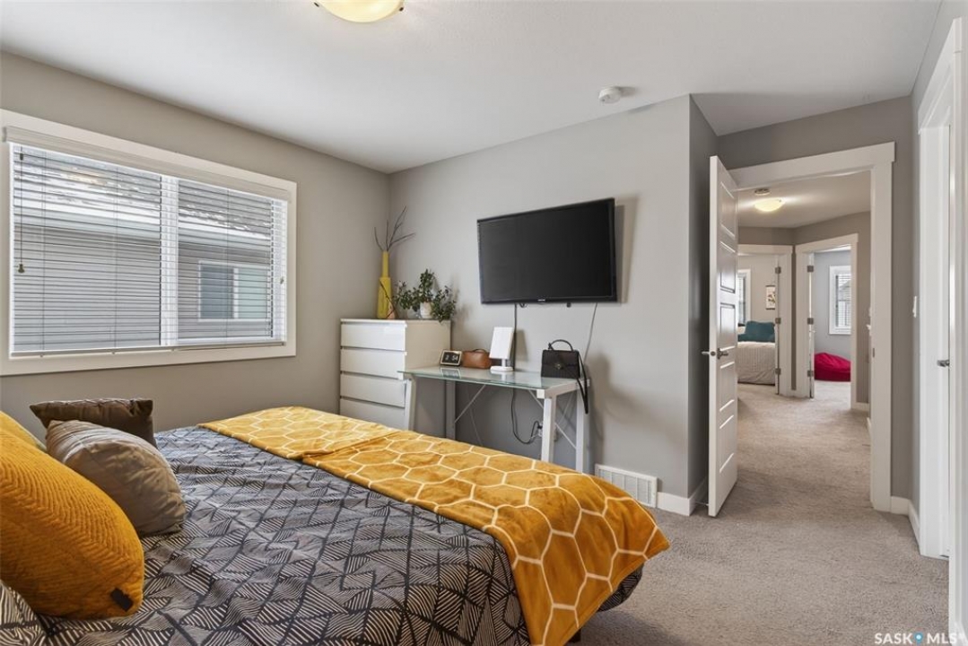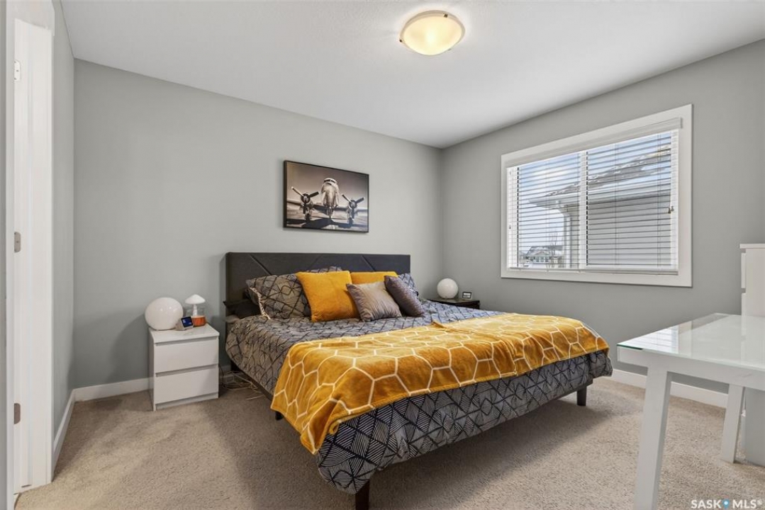 Welcome home to 4533 Green Rock Road E perfectly positioned in our vibrant Greens on Gardiner neighbourhood in Regina SK. This stunning 2014 built, 2-storey half duplex with NO CONDO fees features a stellar 1384SQFT floorplan maximizing functionality & modern comforts with 3 bedrooms, 3 bathrooms, a second-floor laundry room, finished basement space + a single attached garage (w/additional parking)! Welcoming curb appeal leads into a spacious foyer w/closet + a built-in organizer & bench seating. Opening into an open concept main floor w/9ft ceilings, an abundance of natural light & storage galore! The dining rm easily fits a nice size table, adjacent to the comfortably sized living rm w/south facing views of your backyard. This kitchen offers a closet pantry, SS appliances, top-cabinet lighting, soft close cabinetry, & a peninsula style island. Finishing the main are a � bath & direct access off the kitchen area to the two-tiered deck & fully landscaped + fenced (vinyl) yard. Upstairs there are two good sized secondary bedrooms, a full bathroom w/tiled floor, full size vanity & tiled tub/shower insert. The primary bedroom features a super-sized WIC & 3PCE ensuite! Plus there is a dedicated laundry room w/upper cabinets & hanging rod. The basement has been designed to maximize entertainment space w/a large rec room (perfect for games night!), nook area to cozy up and read a book in, & extra storage space under the stairs or in the utility room. You can develop a 4th bathroom if desired, as there is R/I plumbing in place! Perks: Triple Pane Windows, Garage w/direct access to home (electric heat + 220V plug), Central Air (2021), Shed, Pergola, Window treatments/Appliances included (Rented Water Heater/Softener). Such a convenient location you can choose to walk, drive or bike (when there isn't snow on the ground) to schools, parks, Everyday Kitchen, Shopping Centres (Costco & Acre 21) & so much more. This home is ready for you to move in and start making memories!