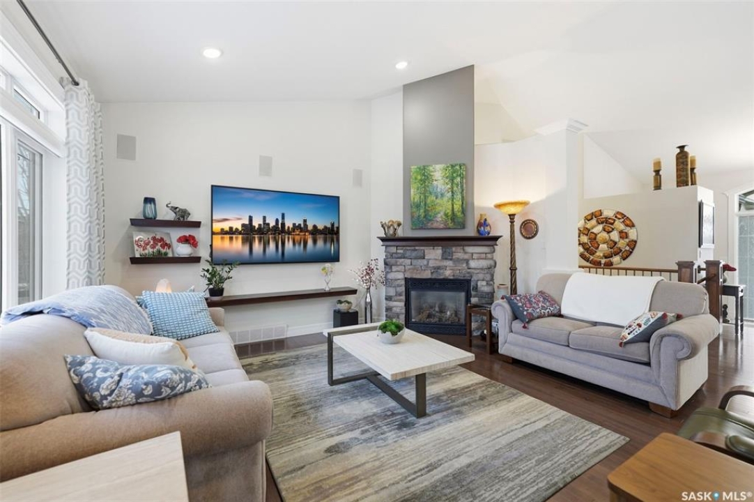 Welcome to 1202 Beechmont View in exclusive Briarwood! This stunning executive style bungalow offers the location, lifestyle and beauty you've been waiting for! Enjoy the comfort and convenience of the open concept main floor with vaulted ceilings, gas fireplace in living room and spacious eating nook with patio access. The kitchen is stunning with its warm cream toned cabinets, granite counters, custom hood fan and island with seating. The formal front dining room features large windows and will be your favourite space to entertain family and friends. Down the hall are 2 bedrooms, including the spacious primary with double sinks, walk-in shower and heated floors. The basement offers an excellent floor plan with a large family room with a gas fireplace and dry bar, 2 large bedrooms + a den, as well a full bath and storage. This impeccable home offers beautiful street appeal with a stucco and stone exterior, mature landscaping and large deck with glass railing. If you've been waiting for the perfect bungalow on a cul-de-sac in the desirable neighbourhood, call your realtor to see this home for yourself -- you will not be disappointed!