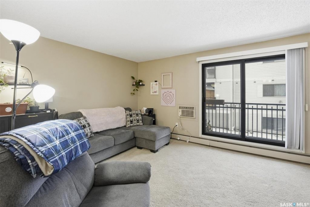 Welcome to the Lexington building in Lawson Heights! This updated 1-bedroom apartment condo located on 2nd floor has been tastefully updated. Kitchen boasts newer cabinets, granite countertops, a stylish tile backsplash, Enjoy the convenience of in-suite laundry with newer ventless washer/dryer combo unit. The large bedroom provides ample space for relaxation, and there is plenty of storage throughout the suite. This pet-friendly building allows pets with restrictions. One electrified parking stall is included, adding to the convenience. Quick possession is possible. Close to Lawson Heights Mall that has most amenities within walking distance.