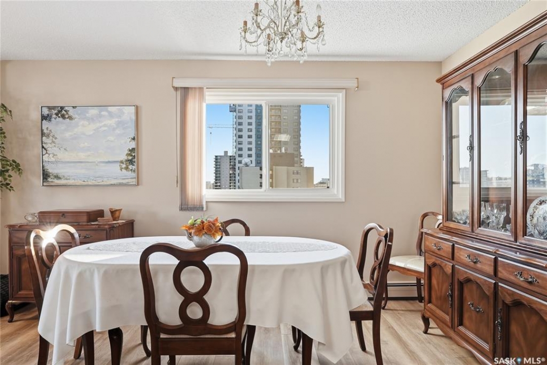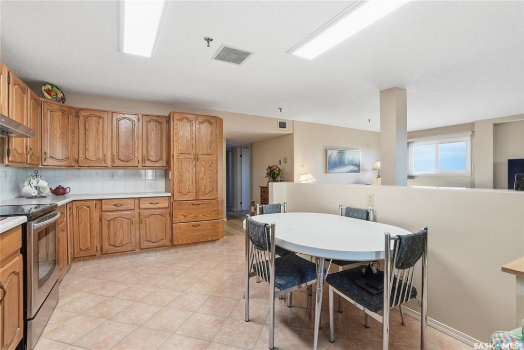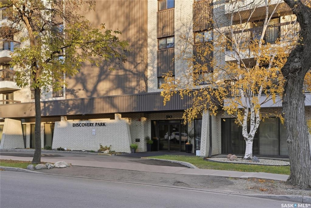 Welcome to unit 1003 – 510 5th Ave North located in the heart of Saskatoon's desirable City Park neighborhood! This condo greets you with plenty of natural light flowing, a functional layout, and spectacular views overlooking Kinsmen Park! Step into your open concept living area, with laminate flooring, sliding glass door to your balcony with picturesque park views, gas fireplace against a tiled mantle, and recessed lighting. Your kitchen provides ample oak cabinetry, tiled backsplash, stainless steel appliances including fridge, stove, dishwasher and hood fan. Open to your formal dining space with a chandelier for a touch of elegance. Your king accommodating primary bedroom features a walk-through closet leading you to your 3-pc ensuite with glass shower and modern vanity. Second bedroom + a den, as well as a 4-pc bath with tile surround tub, a storage room with freezer and laundry hookup, completes this unit! The Discovery Park complex has it all – including an indoor pool, sauna, hot tub, fitness area, amenities room and library! With an unmatched location, only steps away from City Hospital, quick access to the U of S, downtown and our beautiful South Saskatchewan River, this is one you won't want to miss!
