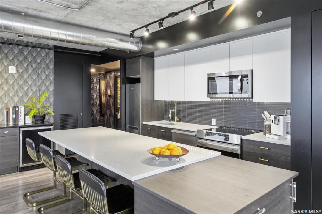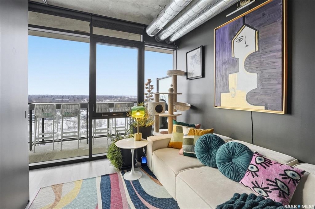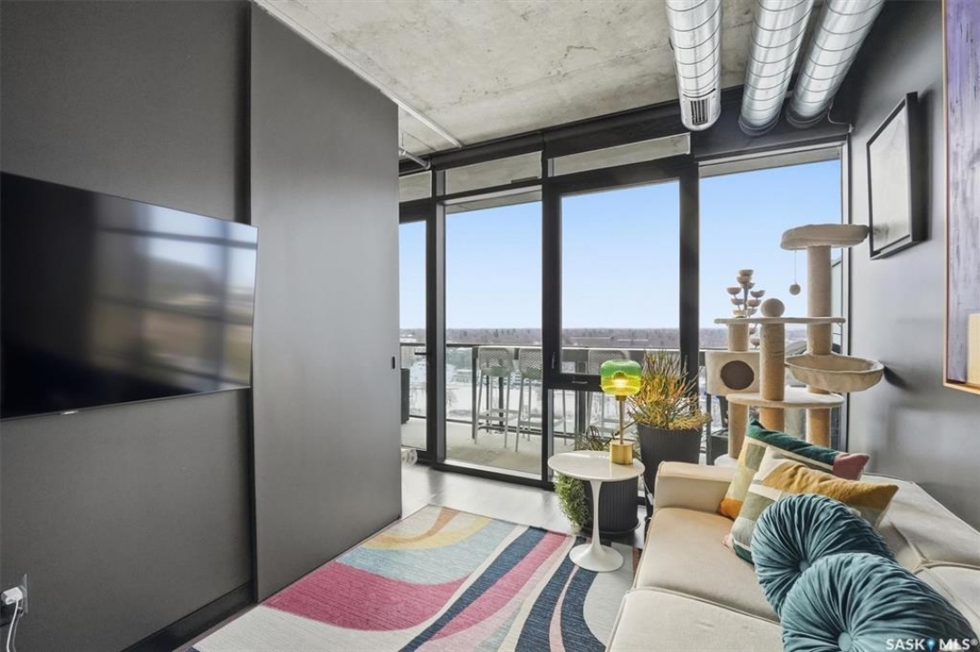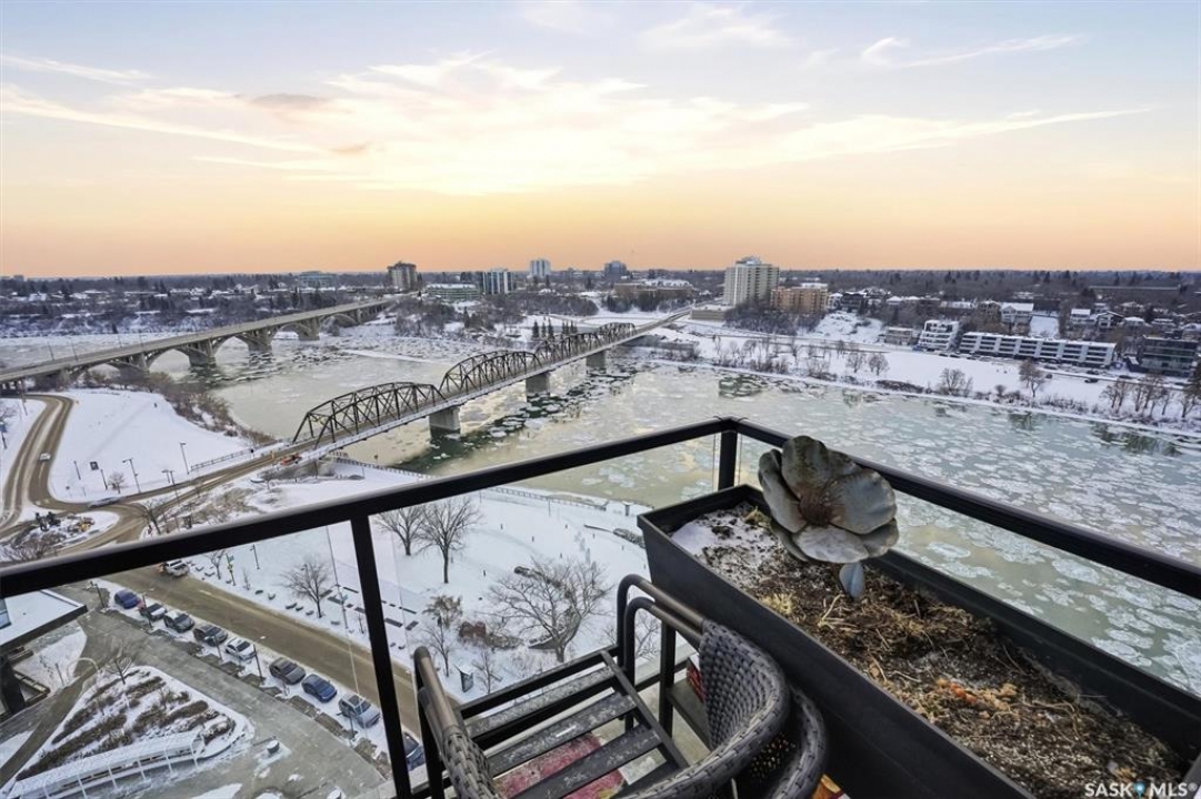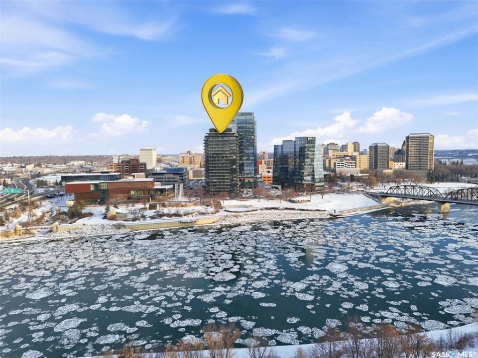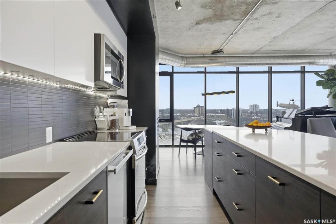 This 15th floor condo has one of the most prime panoramic views in the City. The 9' high floor to ceiling windows wrap around the entire east and south sides of the unit providing breath taking views of the ever changing river view. Two balconies, one off of the master bedroom facing east and another off of the living room facing south. Master ensuite has a large walk-in closet and walk-in shower. Over $80,000 in recent improvements including automatic blinds connected to app. Additional storage in kitchen and dining room custom built with matching cabinetry and 2 small fridges. Overhead light fixtures have been added in key areas. All stainless steel appliances in kitchen, quartz countertops, and a large island with overhang for sitting. Central air, engineered hardwood flooring throughout. Well equipped gym and lounge with pool table on main floor. Titled underground parking stall.
