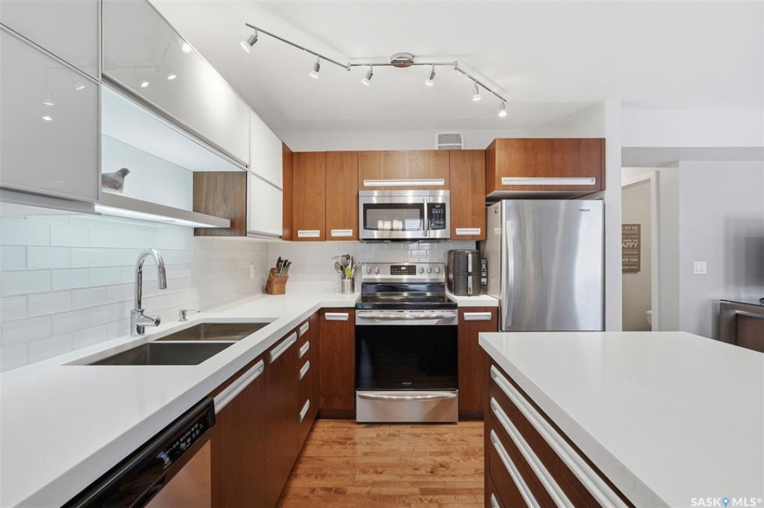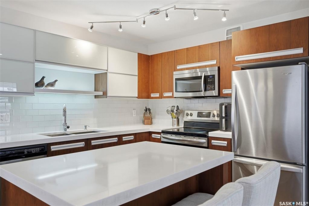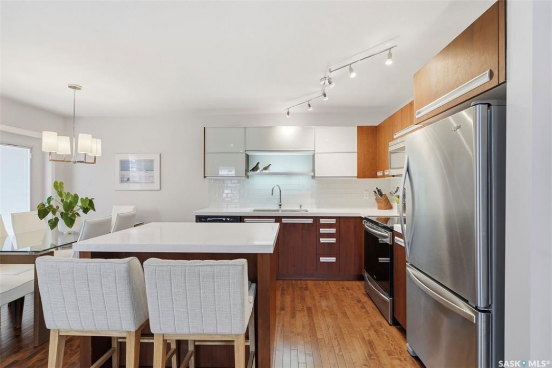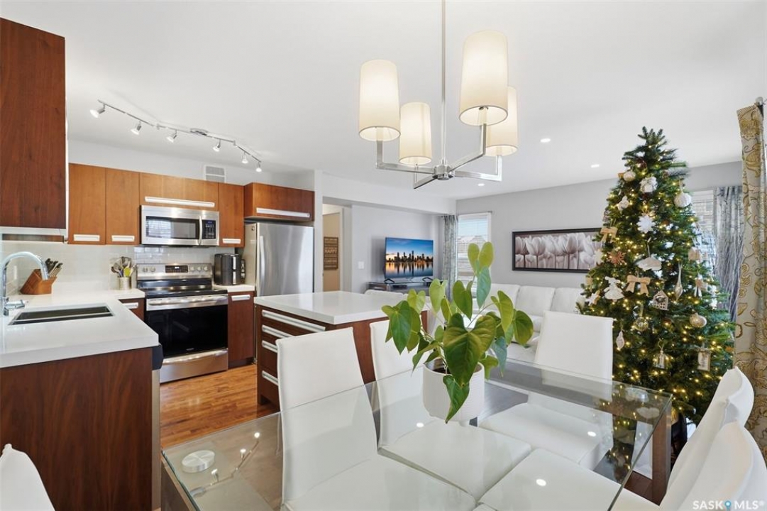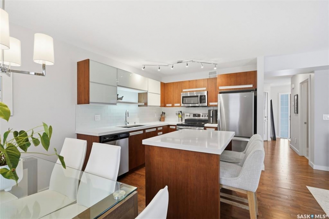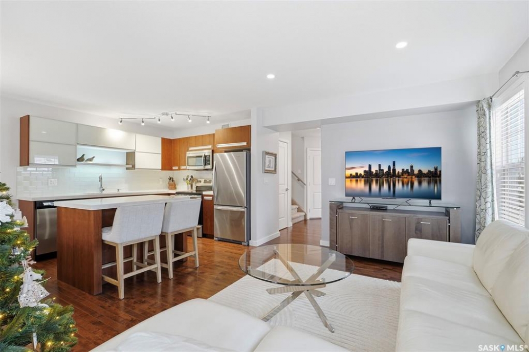 OPEN HOUSE SAT DEC 6TH 12:30-2 & SUN DEC 7TH 12:00-2:00. Step into sophistication with this meticulously kept two-story end unit condo/townhouse boasting 1340 sq ft ,3 bedrooms and 3 bathrooms of contemporary elegance. From the moment you enter, you'll be captivated by the seamless fusion of style, functionality, hardwood floors and its cleanliness! The kitchen is very modern, has a large island, ample storage space, soft-close hardware, quartz countertops, undermount stainless steel sink, glass tile backsplash and all appliances are included. The living room has plenty of natural light and is open to the dining room. The dining room has doors to the backyard patio area. The upstairs has 3 very large bedrooms, the primary bedroom has a jack and jill door to the 4-piece bath with a skylight. The basement is fully developed with a large family room, a 3-piece bath/laundry room and has plenty of storage. The single attached garage has direct access into the home and is fully insulated. Other notable features: 2 bedrooms have custom closets, lots of windows (corner unit), some new light fixtures, newer fridge & stove, central vac, central air and visitor parking is located out front on the condo. This place shows 10/10! Schedule your showing today!