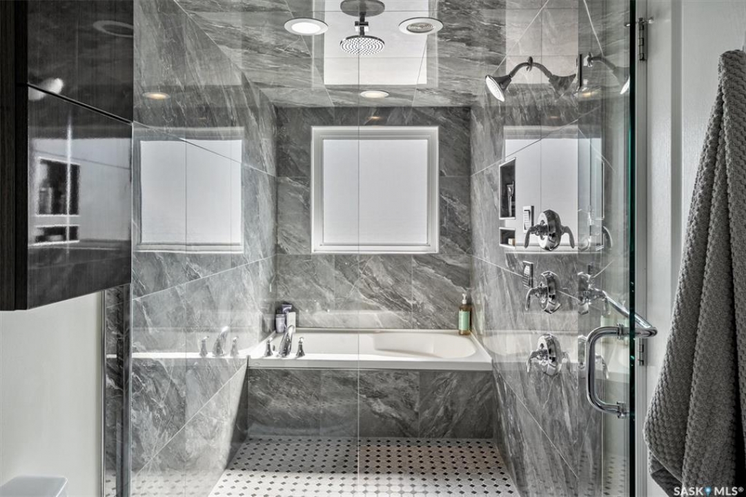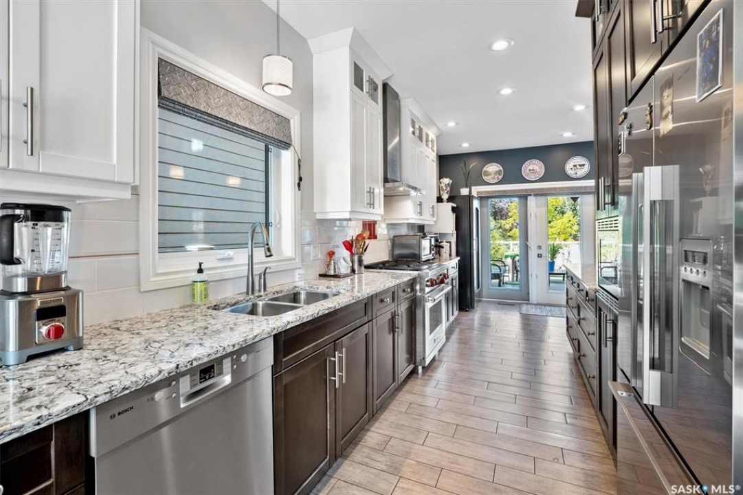 Immaculate custom-built home in Warman with Premium finishings designed with wheelchair accessibility in mind. Main Floor: Extra-wide galley kitchen with granite counters, high-end appliances (gas stove/hood fan, double-door fridge/freezer, built-in microwave, dishwasher). Main-floor primary bedroom with walk-in closet and direct access to 3-pc accessible bath. Wide hallways, lever handles, roll-under sinks. Personal 3-stop elevator with access to garage, main, and basement. Second Floor: Second primary bedroom plus bedroom/office. Shared 4-pc bath (reno 2022) with access from both rooms. Basement: Exceptional entertainment space featuring a large family/media room with fireplace, custom shelving, and 10-speaker Dolby Atmos system. High-end wet bar with granite island, dual-drawer dishwasher, drying-rack sink, custom cabinets, and glass wine cellar (300 bottles). Bedroom with built-in queen Murphy bed next to 3-pc bath. Laundry, storage, and utility rooms. Garage: Fully insulated and heated double garage with EV charger and full golf simulator (projector, retractable screen/enclosure). Elevator access. Yard: Low-maintenance landscaping with composite deck, 4-hole putting green, artificial chipping area, extensive patio with multiple seating/BBQ areas, vinyl fencing, large garden boxes with underground sprinklers, and four storage sheds. Accessibility Highlights: Two roll-in showers with grab bars and multi-head fixtures, full turning radius bathrooms, wide hallways/kitchen, extra-wide fence gates, moveable rubber ramp, main-floor bedroom sized for lift use. Updates: Hot water tank (2019), upstairs bath (2022). A must see for any family!