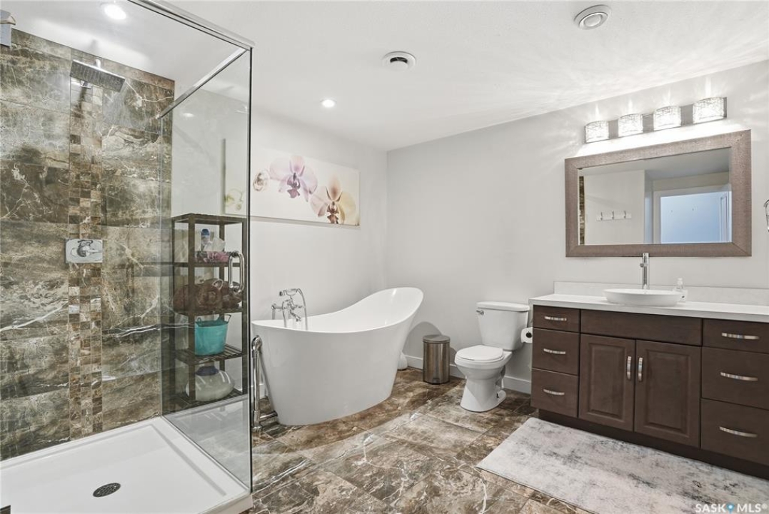 439 Senick Bay offers a rare opportunity to own a spacious raised bungalow in the well-established Stonebridge neighborhood. Situated on a quiet bay, this property combines privacy with proximity to schools, parks, and all the amenities Stonebridge has to offer. Step inside the 1,415 sq. ft. home and you're welcomed by a generous foyer with a walk-in closet. The open-concept main floor features tall ceilings, a bright living room with a cozy fireplace, and a thoughtfully designed kitchen with abundant storage, prep space, and a large island. From the dining area, walk out to the deck overlooking a mature, tree-lined backyard that provides natural privacy. The main floor hosts three bedrooms, including a primary suite with walk-in closet and 3-piece ensuite. A second 3-piece bath and convenient laundry room with ample storage complete the level. Downstairs, oversized windows and tall ceilings make the fully finished basement feel anything but below grade. A spacious family room and play area are complemented by two additional bedrooms, a home office, and a luxurious 4-piece bathroom with walk-in shower and freestanding tub. The utility room adds even more storage options. A heated, fully finished double garage rounds out this impressive property. 439 Senick Bay is a home that blends comfort, functionality, and timeless appeal. Schedule your private showing today.