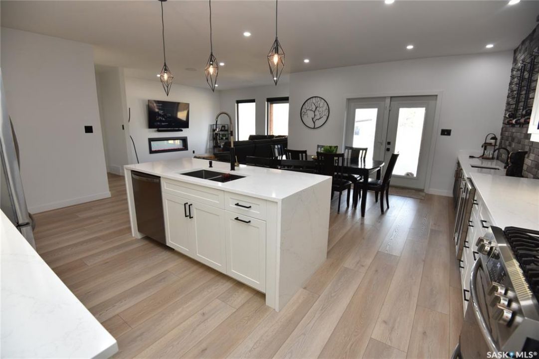Stunning designer home with thoughtful appointments on 302 Coventry Crescent . This modern 2 story has gorgeous street appeal in a fantastic location near the edge of town in Nipawin's newest development. Quality construction with high end finishings and appliances throughout. Pamper yourself, no expense has been spared! Modern layout complete with 4 bedrooms and 3 baths will suit a wide variety of families. The kitchen is the focal point of the home filled with custom cabinetry finished with waterfall quartz countertops. You'll appreciate all the conveniences of the built in island complete with breakfast bar, large undermounted sink, built in separate refreshment cooler, custom range hood for stove complete with plumbed pot filler, and the extra space provided by the nearby butlers pantry!. The large dining and living areas overlook the backyard and are the perfect place to gather with friends and family. The garden doors lead to a large composite covered deck perfect for those evening BBQ gatherings. Looking for a getaway? The master bedroom is you own private retreat complete with walk in closest, 5 piece en-suite with double sinks, deep soaker tub, custom glass shower, and a cavernous walk-in closet. The 2nd floor features a cozy family room complete with wet bar. There are two large bedrooms and bath here as well. Other Amenities include: Two car attached and heated 30x28 garage, main floor laundry, built in WIFI sound system, fully landscaped and fenced yard with firepit, underground sprinklers, and colour matched garden shed. Homes like this don't come around very often. The attention to detail on this one is truly spectacular! Book your showing today of this move in ready home. You will not be disappointed.