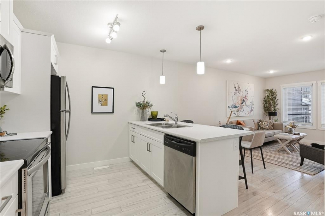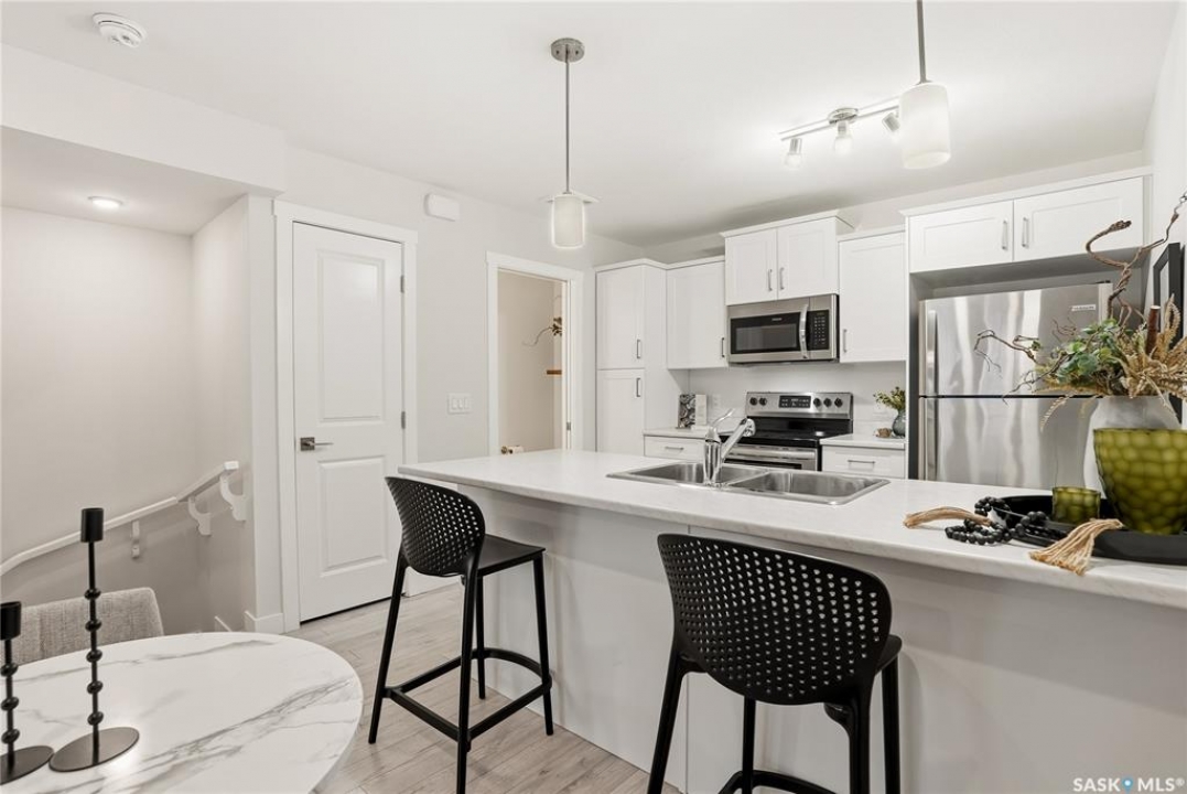 Welcome Home to The Oaks. This modern townhome is big on style, smart on value, and offers all the convenience and comforts you desire. This 1 Bed + Den, 2 Bath townhouse is spacious and bright with a functional and open layout for living large in a right sized floorplan. Main floor features include a well appointed kitchen that is modern yet timeless with ample cabinet and counter space, large peninsula island, and stainless steel appliances; great entertaining space that is open to dining area and living room with large windows and balcony access; plus a 2-pc powder room. Upstairs you'll find the primary bedroom with walk-in closet; dedicated laundry space; versatile den with walk-in closet makes for a great home office or guest space; plus the 4-pc main bath. Comfort features include a spacious and fully insulated attached garage with direct entry; ample storage space; central-air-conditioning for keeping cool; plus a covered balcony for outdoor enjoyment, ideal for morning coffee and evening relaxation. A fantastic Stonebridge location offers easy access in and out, just steps to numerous parks, top rated Public and Catholic Schools, and full range of amenities including gym, groceries, restaurants, medical, fuel, and more. Comfort. Convenience. Modern style. Smart value. This is the townhouse and lifestyle opportunity you've been looking for - book your private showing today.