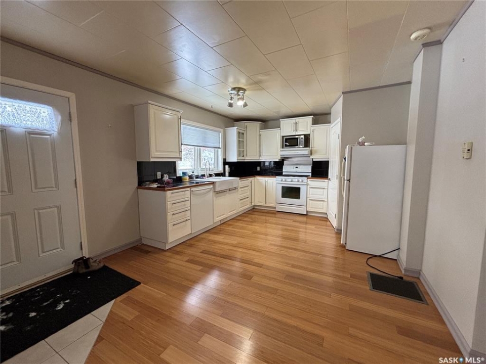 Charming & Affordable 3-Bedroom Home in Maple Creek. This move-in-ready, one-level home offers both comfort and convenience in a central Maple Creek location. It features a spacious kitchen with a 5-burner gas stove, large pantry, and plenty of storage. The expansive living area and kitchen face west, bringing in abundant natural light throughout the day. The upgraded bathroom is a standout, complete with a luxurious soaker tub and separate shower. Many windows have been replaced, and a small addition was added in 2010 for extra living space. For added convenience, the crawl space is easily accessible with stairs and plywood walls, keeping everything clean and dry—perfect for storing seasonal items. Other highlights include central air, a ground-level deck, a single-car garage, and a carport. Located on a quiet street, this low-maintenance home is ready for immediate possession. Call today to schedule your tour.