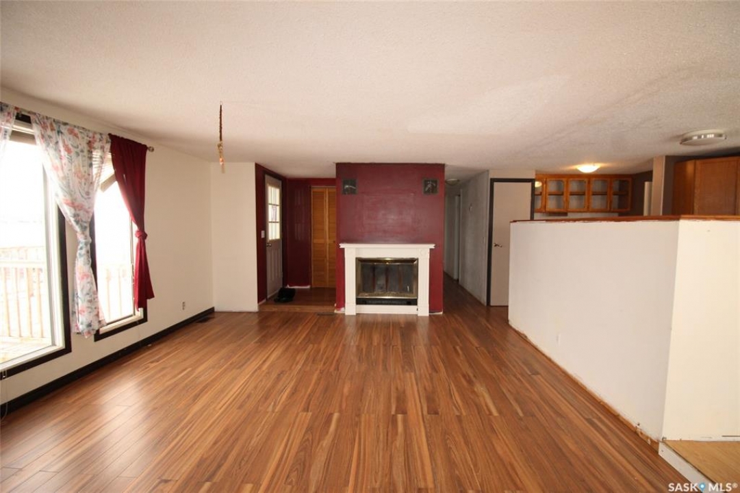 Located on the corner of highway 37 & 13 this acreage is gives you lots of space with all town amenities in walking distance. The home is a fixer upper but has a good basement and lots of potential. The main floor hosts two bedrooms up with two bathrooms. The kitchen, dining and living room are all open so you can entertain and keep conversation alive. The basement has had some rooms being framed, but not complete. There is another 4 pc bath downstairs as well as dedicated laundry space. The back deck looks out to the West to catch the best Sunsets. There is some other outbuildings and room to grow and create a little homestead!