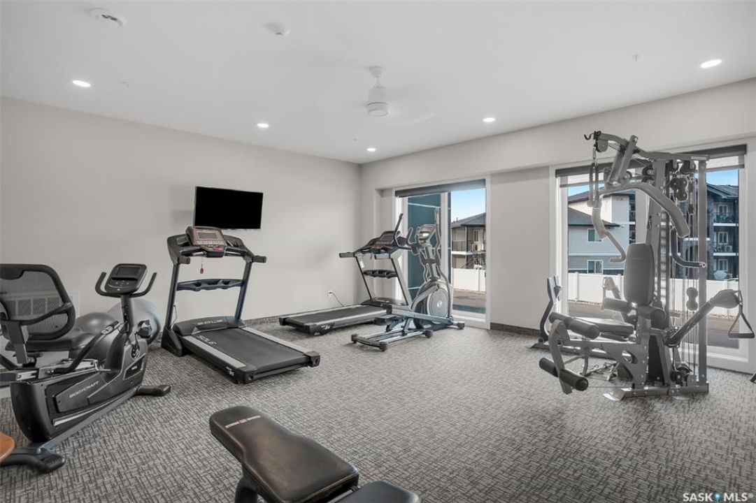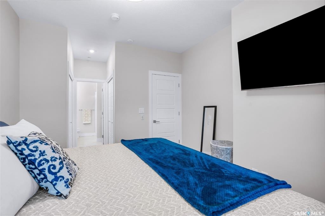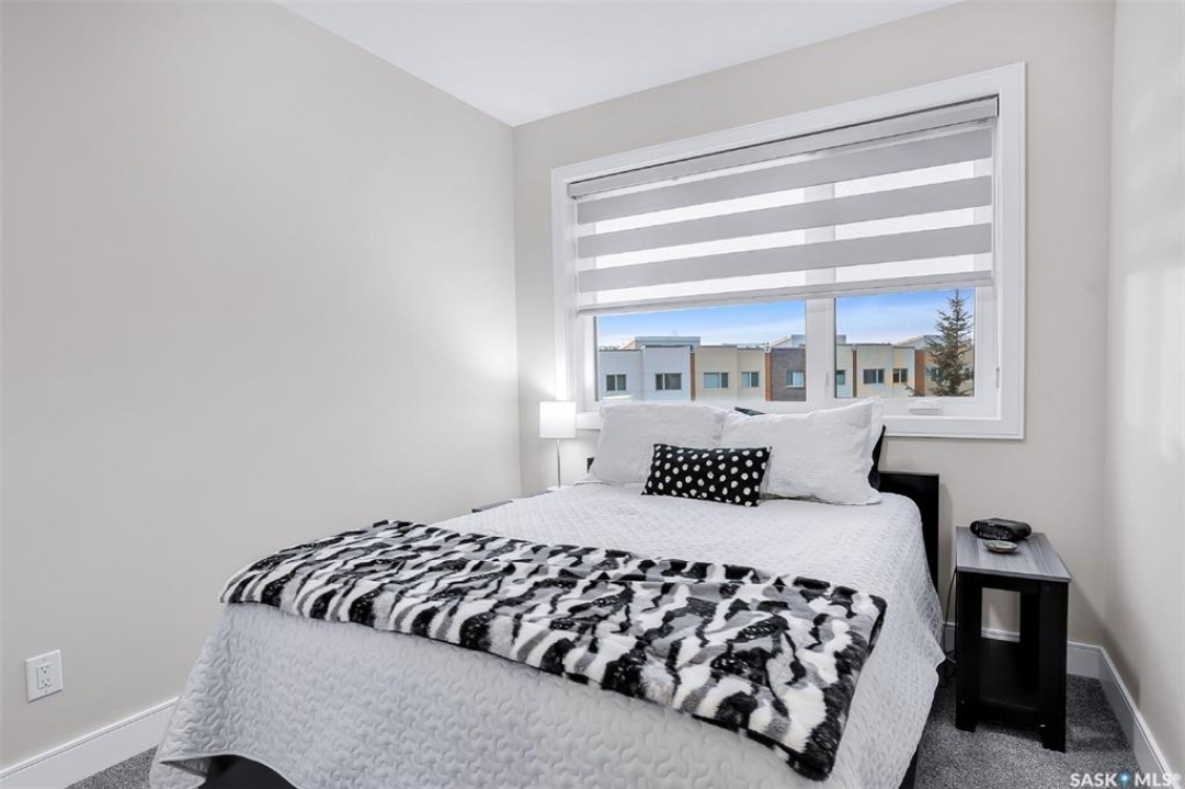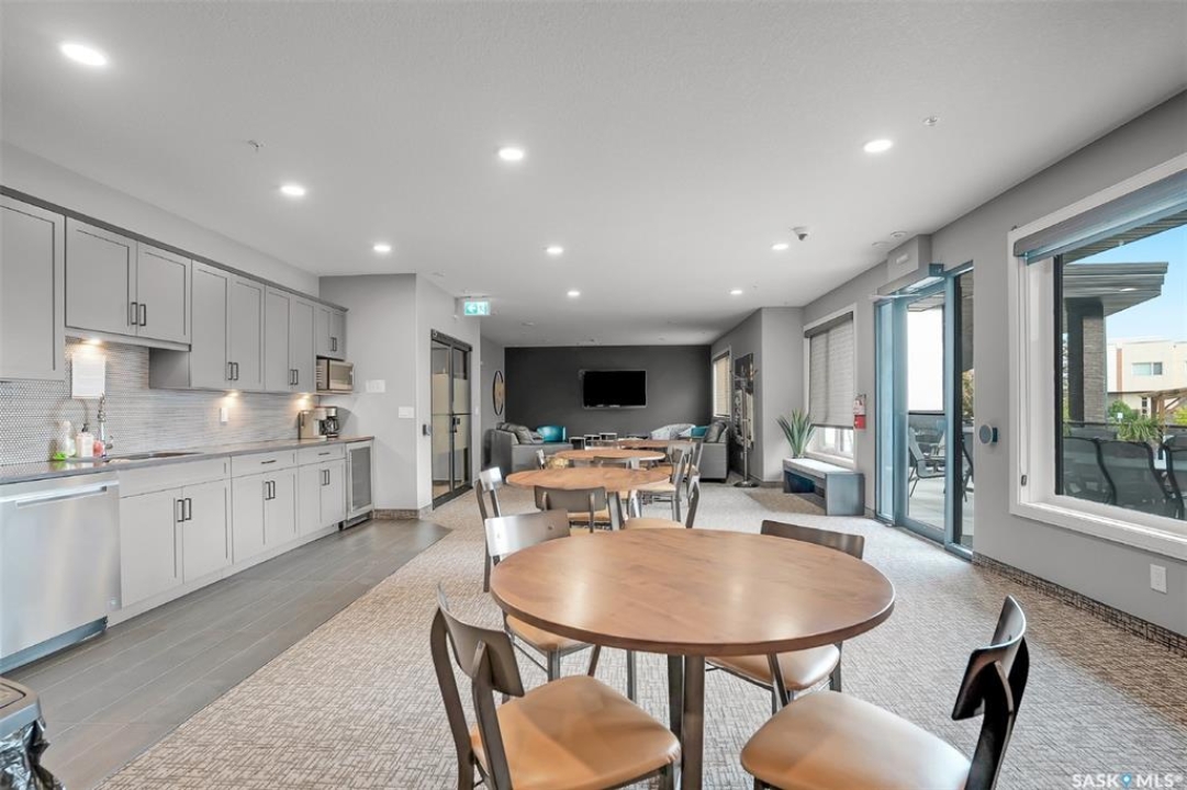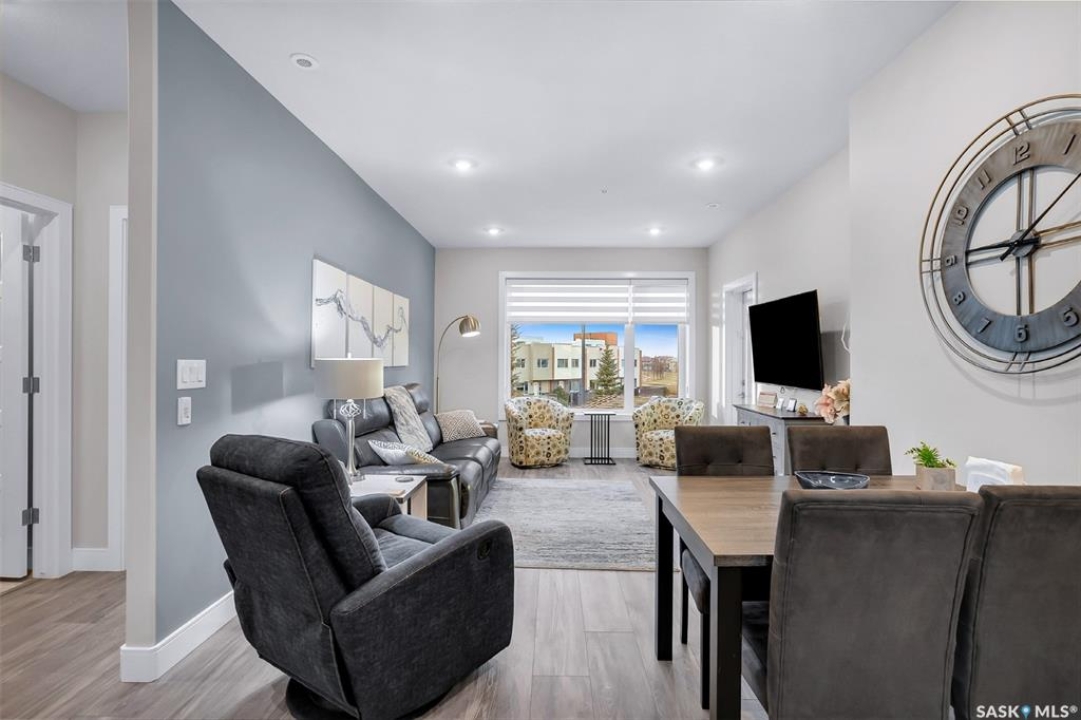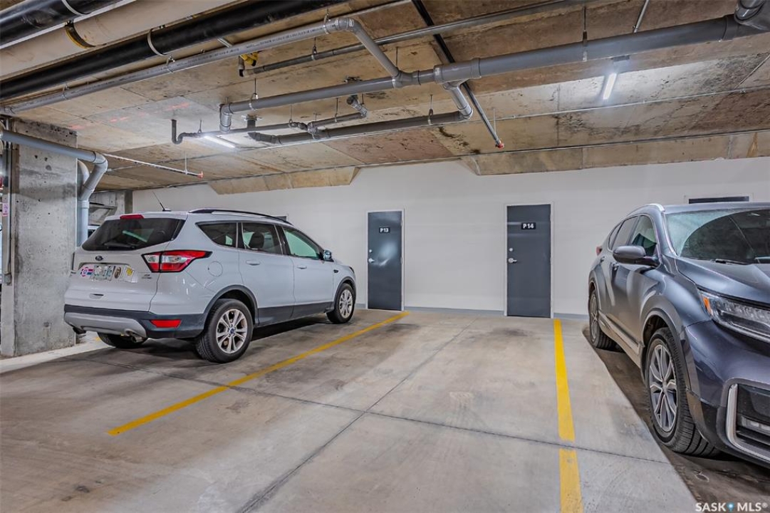 Welcome to modern living in the heart of Stonebridge — a home that feels calm, intentional, and beautifully finished from the moment you step inside. This 1,083 sq. ft. condo offers an airy, open layout with 9-foot ceilings, large windows, and a thoughtful blend of comfort and contemporary style. Barely lived in and showing like new, every inch feels fresh, refined, and move-in ready. The kitchen is the centrepiece of the home: an inviting, well-planned space with a large island (complete with pullout drawers), quartz countertops, tile backsplash, under-cabinet lighting, stainless steel appliances, and an abundance of cabinetry including a built-in pantry. The living area flows seamlessly from here, framed by expansive natural light and opening onto a private covered balcony — the perfect spot for a quiet moment or an evening to unwind. The primary suite is a retreat of its own, offering a generous bedroom, walk-through closet, and a spa-inspired ensuite featuring dual sinks, a walk-in shower, and thoughtful linen storage. On the opposite side of the condo, a second bedroom and full four-piece bathroom create ideal separation for guests, a home office, or a creative workspace. This home also includes central air conditioning, Hunter Douglas window coverings, in-suite laundry, and heated underground parking with a large storage unit. The building itself offers impressive amenities: a well-equipped gym with a wall of windows, a lounge with pool table and shuffleboard, outdoor fire tables, and a private guest suite for visiting family and friends. An added bonus: the stylish, modern furniture can be included — allowing you to move in effortlessly and enjoy the space immediately. Step outside to Peter Zakreski Park with its walking trails, lake, and greenspace, or stroll to nearby cafés, groceries, shops, and services. With quick access to Circle Drive, the rest of the city is only minutes away. Be sure to check out the virtual tour!