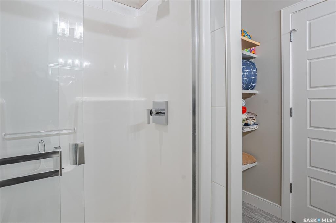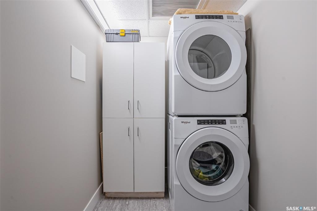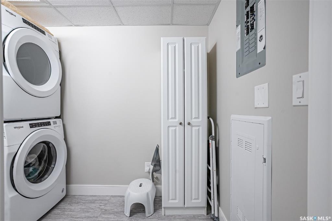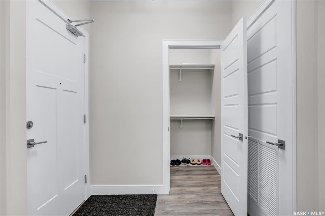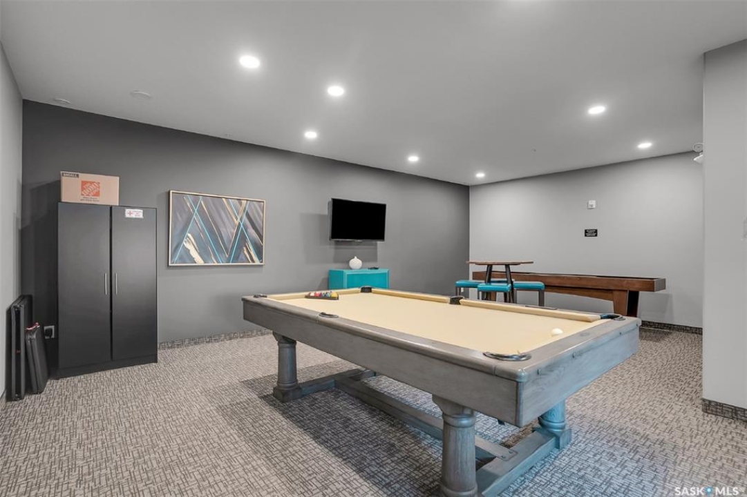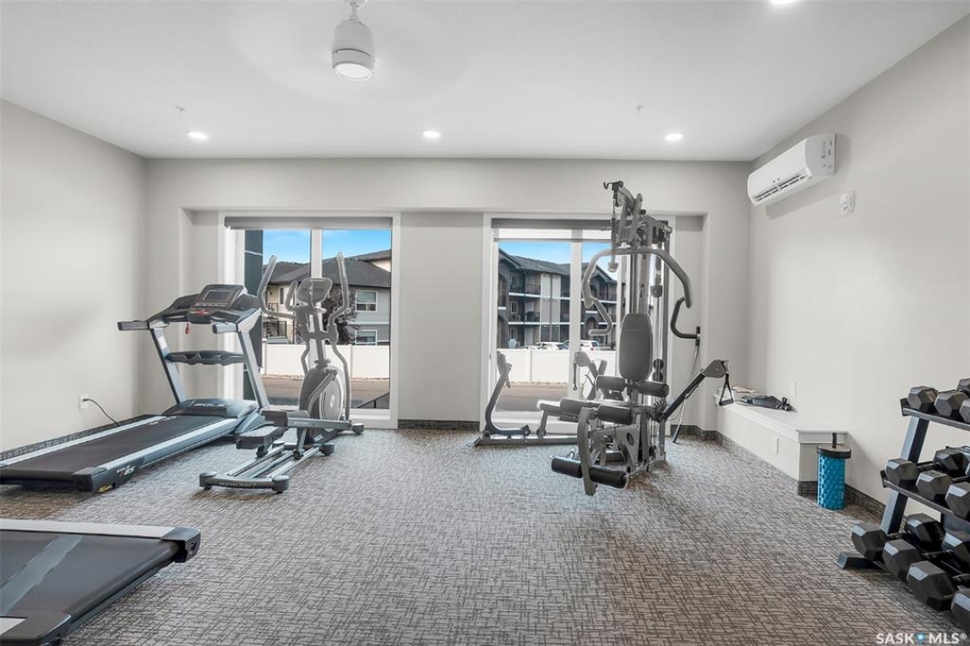Welcome to modern living in the heart of Stonebridge — a home that feels calm, intentional, and beautifully finished from the moment you step inside. This 1,083 sq. ft. condo offers an airy, open layout with 9-foot ceilings, large windows, and a thoughtful blend of comfort and contemporary style. Barely lived in and showing like new, every inch feels fresh, refined, and move-in ready. The kitchen is the centrepiece of the home: an inviting, well-planned space with a large island (complete with pullout drawers), quartz countertops, tile backsplash, under-cabinet lighting, stainless steel appliances, and an abundance of cabinetry including a built-in pantry. The living area flows seamlessly from here, framed by expansive natural light and opening onto a private covered balcony — the perfect spot for a quiet moment or an evening to unwind. The primary suite is a retreat of its own, offering a generous bedroom, walk-through closet, and a spa-inspired ensuite featuring dual sinks, a walk-in shower, and thoughtful linen storage. On the opposite side of the condo, a second bedroom and full four-piece bathroom create ideal separation for guests, a home office, or a creative workspace. This home also includes central air conditioning, Hunter Douglas window coverings, in-suite laundry, and heated underground parking with a large storage unit. The building itself offers impressive amenities: a well-equipped gym with a wall of windows, a lounge with pool table and shuffleboard, outdoor fire tables, and a private guest suite for visiting family and friends. An added bonus: the stylish, modern furniture can be included — allowing you to move in effortlessly and enjoy the space immediately. Step outside to Peter Zakreski Park with its walking trails, lake, and greenspace, or stroll to nearby cafés, groceries, shops, and services. With quick access to Circle Drive, the rest of the city is only minutes away. Be sure to check out the virtual tour!