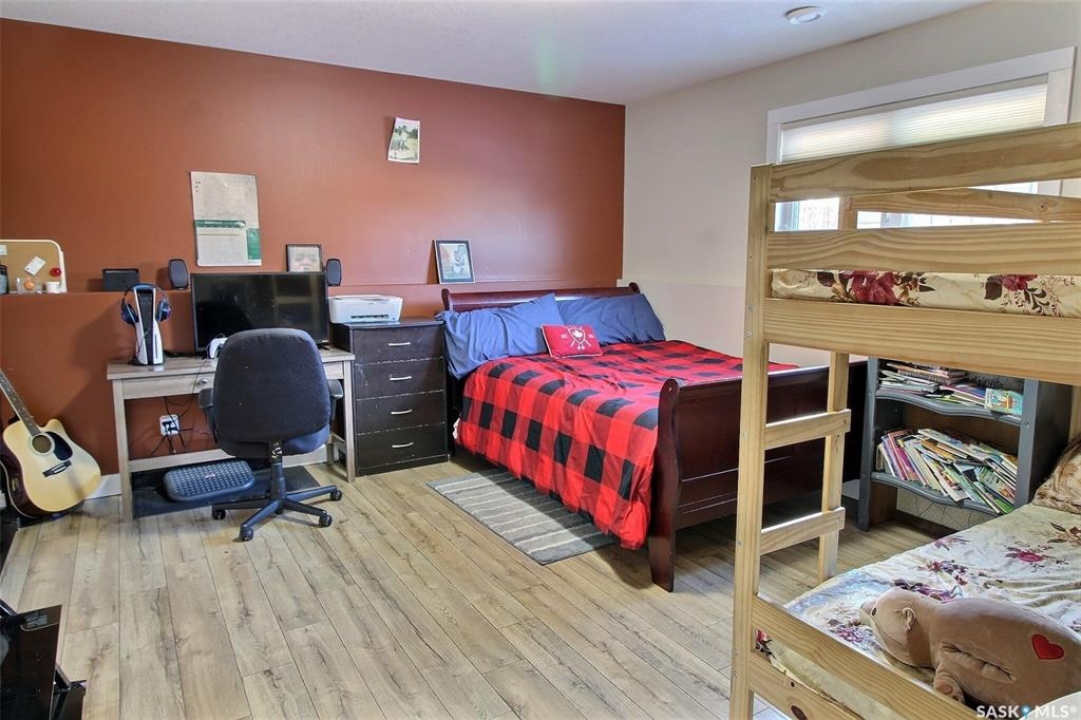 This charming 4-bedroom, 3-bathroom bi-level home is tucked away in a quiet East Flat cul-de-sac. Spanning 1336 square feet, it boasts a heated double garage with direct foyer access. The master bedroom features a walk-in closet, a luxurious 5-piece ensuite, and access to the upper deck. Cozy gas fireplaces enhance both levels. The main floor, adorned with Bamboo hardwood, is ideal for entertaining, offering a stylish kitchen with an island, dining area, and a seamless living room. Step out onto the east-facing covered deck with an NG BBQ hookup. The basement provides extra entertainment space with rock cladded gas fireplace, a wine fridge, cabinets, and counter area. Outside, you'll find a covered ground-level deck, two storage sheds, and a backyard garden. The home also includes central air and an air exchanger for ultimate comfort. Book your private viewing now!