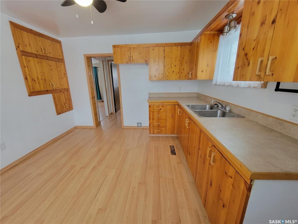 .Step into this quaint and cozy 754 sq. ft. bungalow—an excellent opportunity to begin your journey into home ownership. Featuring 2 bedrooms and 1 bathroom, this charming home offers a bright living space, a functional kitchen, and main floor laundry for added convenience. Situated on a 50 ft x 120 ft. lot in North Battleford, the property includes a partial basement for storage, laundry, and utility room. With its affordable price point and inviting layout, this home is perfect for first-time buyers, downsizers, or anyone looking to add value with personal touches. Don't miss your chance to make this warm and welcoming property your own! Sold as is* in proces of attaining 2025 property tax amount.