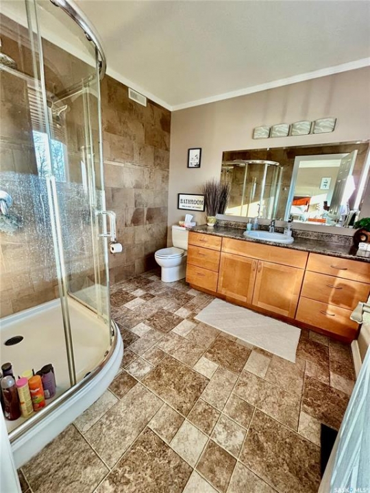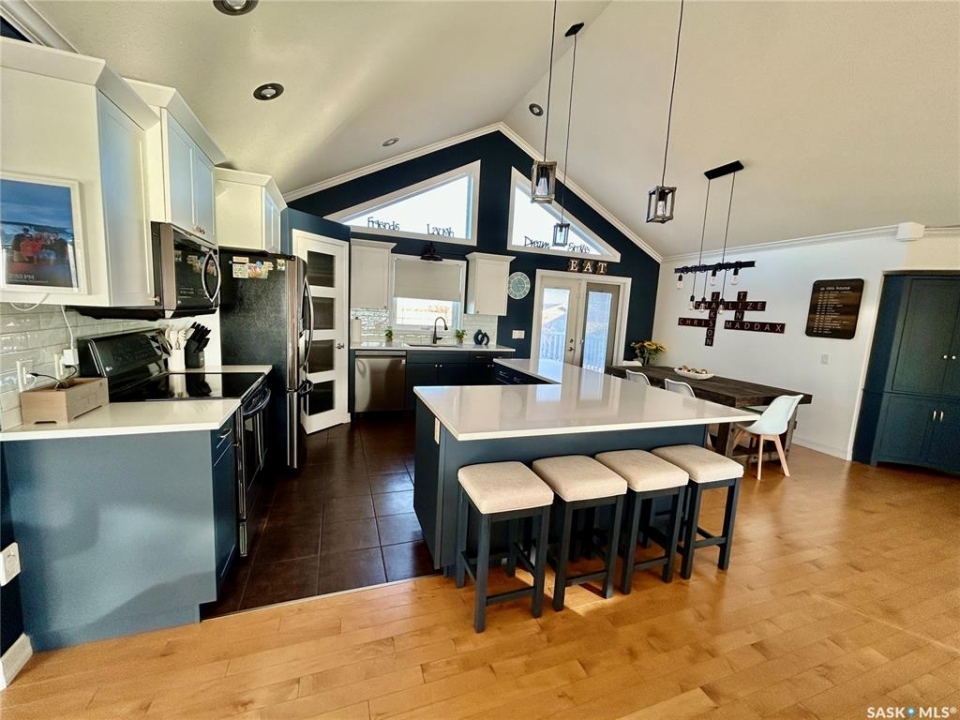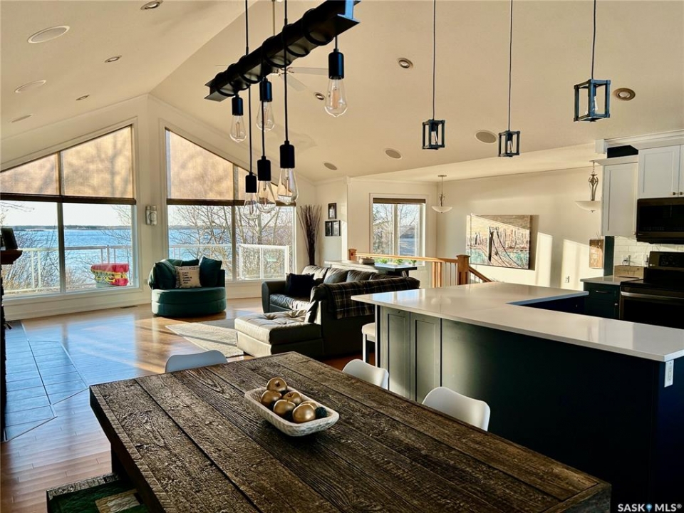 Discover lakeside living at its finest with this beautiful 1,610 sq. ft. bungalow offering comfort, style, and year-round luxury. Impeccably maintained and thoughtfully upgraded, this home is perfect for families, retirees, or anyone dreaming of peaceful waterfront living. Wake up to tranquil water views, sip morning coffee on the lakeshore, and embrace the peaceful beauty of Humboldt Lake. The main floor boasts 2 spacious bedrooms, 3 modern bathrooms, main floor laundry as well as a gorgeous newly renovated kitchen complete with in-floor heat, modern finishes, crisp quartz countertops and a stunning oversized island-making it the hub of the home, and the perfect place for entertaining. The open concept living room offers built in speakers, a grand wood burning fireplace, as well as gorgeous panoramic views and plenty of natural sunlight. The fully finished basement includes two cozy bedrooms, an exceptionally large 4-pc bathroom, ample storage and a grand family room perfect for hanging out after a beautiful day on the water. Additional features include an attached, heated 3 car garage with built in speakers providing a dream setup for vehicles, hobbies or extra storage, as well as a bonus "Man Shed"/Hangout Haven, being the perfect spot to unwind, watch the game, or chill with friends. Outside, the beautifully maintained grass, mature greenery, and lake views make it feel like your own private retreat. This property has it all, book your showing today and experience the beauty of Humboldt Lake for yourself!
