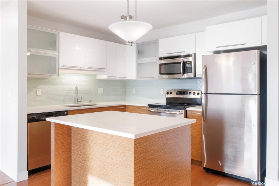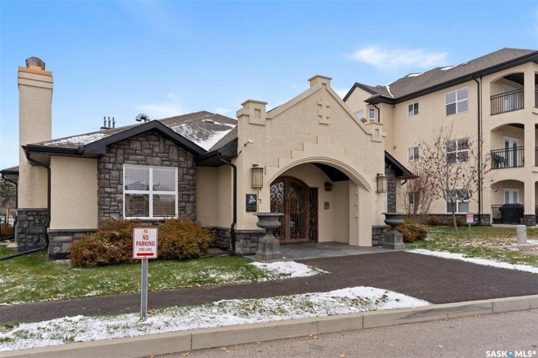 Welcome to 103C-415 Hunter Road in Stonebridge! This main floor, south facing two bed, one bath condo has everything one could need. Freshly repainted and ready for immediate possession. The condo boasts a smart layout with two bedrooms on opposite ends, a four-piece bath with a quartz countertop, and a kitchen with ample cabinet space and a functional island. The in-suite laundry room is convenient and the bedrooms features large closets. 2 parking stalls are included close to the entry. The complex is among the best in town, featuring an indoor pool and gym. It's within walking distance to many amenities and offers quick, easy access out of Stonebridge to Circle Drive. Owners are allowed to have 2 animals with board approval - smaller dogs allowed under 35 lbs allowed or two cats. Condo fees include water, insurance, heat, reserve fund, lawn care and snow removal.
