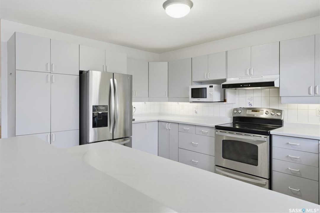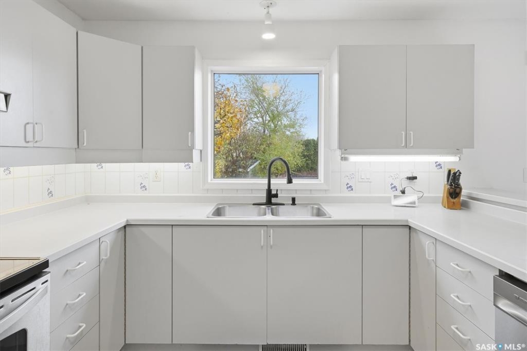 $$20,000.00 BUYER INCENTIVE FOR FLOORING$$. Welcome home to 614 Reid Road. You are greeted by a large foyer with stairways leading up or down. The main floor features an open concept kitchen and dining area. The kitchen features lots of cabinetry, peninsula with eating bar and upgraded stainless steel appliance package. The dining area has south facing garden doors leading out to the deck and back yard. The living room is spacious and features a gas fireplace. Finishing off the main floor is a 4 pc bathroom and a spacious primary bedroom with a 3 pc. ensuite. This second floor has two large bedrooms. The basement is fully developed including a family room with a gas fireplace, oversized bedroom, 3 piece bathroom, laundry, and storage room. The home has a finished 22 x 24 foot attached garage. Outside you will find a finished yard with a large deck, play unit and shed. Recent work to home includes triple pane windows 2017 shingles in 2020, air conditioner in 2022, deck in 2023, fridge in 2024, water heater and dishwasher in 2025. Located just minutes from the University of Saskatchewan, close to shopping, public transportation, the river, Sutherland Dog Park and Herbert Stewart Park. This home is complete and ready for its next family!