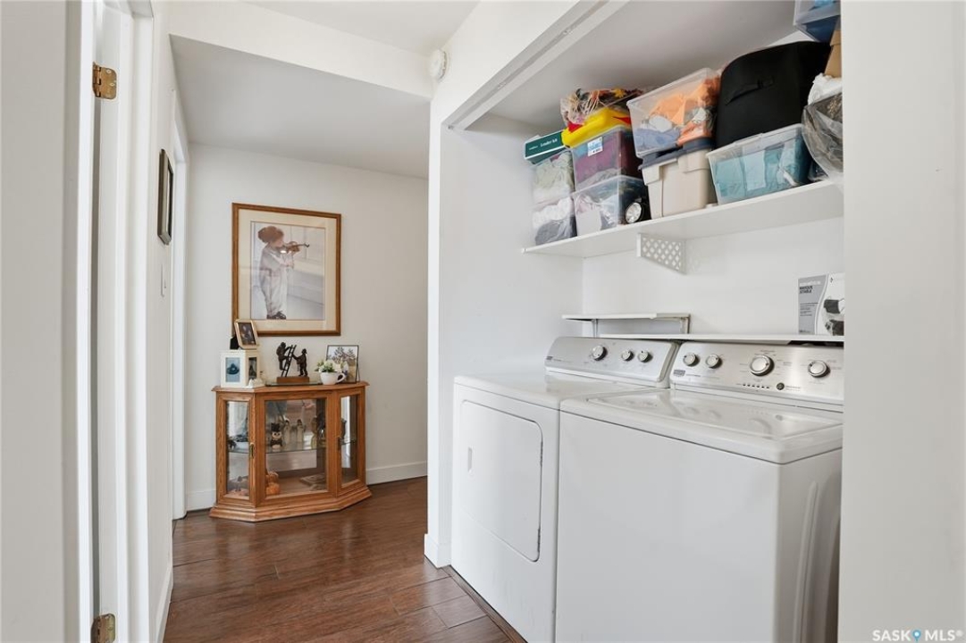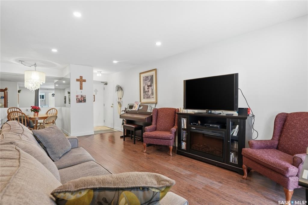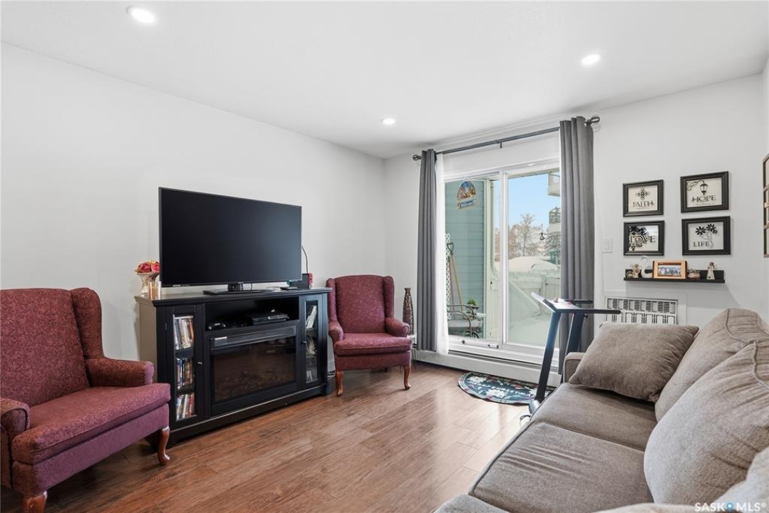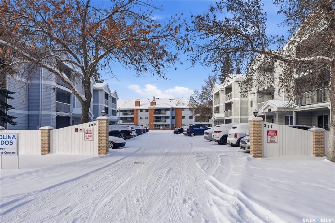 Check out this bright and affordable SOUTH-FACING 2-bedroom condo in The Carolinas—just minutes from downtown Saskatoon in desirable Lawson Heights! This upgraded, and beautifully maintained main-floor unit offers exceptional value with in-suite laundry, an exclusive electrified parking stall located right outside your private patio, and convenient enclosed deck storage. Inside, you'll love the open and functional layout, with the living room flowing seamlessly into the kitchen and dining area. The primary bedroom features a large walk-in closet, and the entire home is exceptionally well cared for. This second-owner unit is move-in ready! The location is unbeatable: steps from parks, bus routes, and every amenity you could need, including groceries, shopping, medical services, banks, schools, and more. With ample on-site guest parking—and easy street parking as well—this home is perfect whether you're starting or downsizing. The Carolinas is a well-managed and well-maintained complex with a healthy reserve fund, giving peace of mind to future owners. Come see what this wonderful unit has to offer!