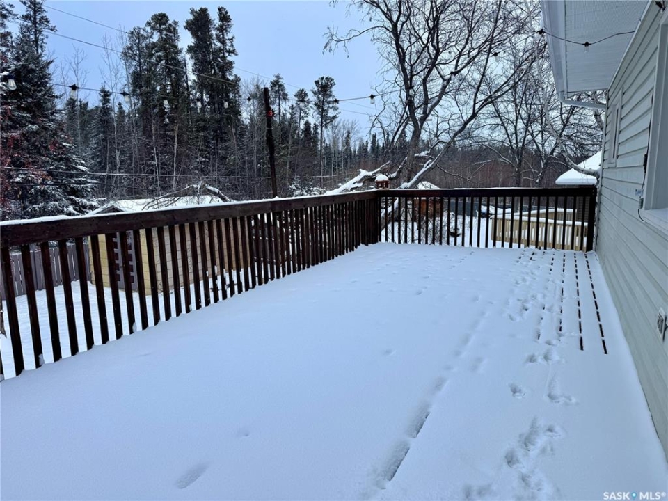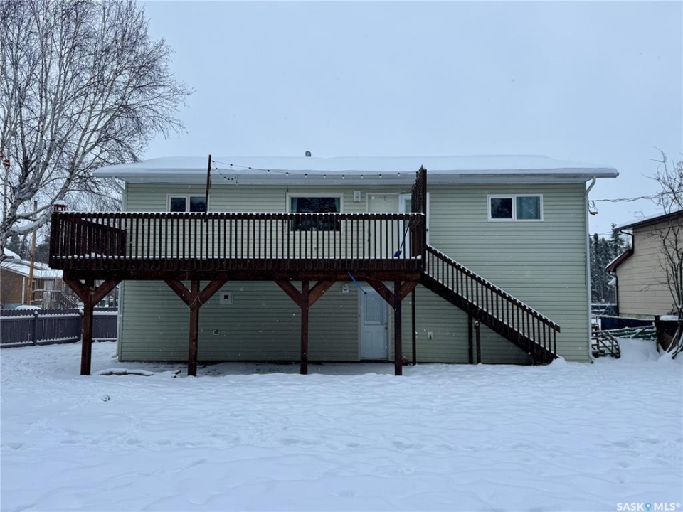 Check out this unique 2 storey home on a lovely quiet street in La Ronge! Backing onto a green space of trees, this large home is thoughtfully designed to enjoy as one family or multiple generations living together under one roof. Upstairs you find a beautiful modern eat-in kitchen with white cabinets, butcher block counters, a built in wall oven, cooktop, a large pantry, and a window to the huge living room. There are 4 bedrooms upstairs - the large master features a view of the backyard, his and hers closets, and a jack-and-jill ensuite shared with another bedroom (what a perfect set up for a nursery!). On the other side of the house, there are 2 more bedrooms and a full bathroom with a tub & shower. On the main level, there is a full laundry room and main entrance to the house with access to the oversized single car garage, and then as a huge bonus, you find a non-conforming mother-in-law suite with a kitchenette, bathroom with a shower, a large bedroom, a separate entrance, and laundry located in the garage. The house is heated with a newer natural gas furnace and you can have endless showers and baths with the natural gas on demand water heater! Outside, the fenced backyard is nicely landscaped, has a large raised back deck off the dining room, garden beds, a lovely fire pit area, and a storage shed. There is tones of value in this lovely home - don't miss out!