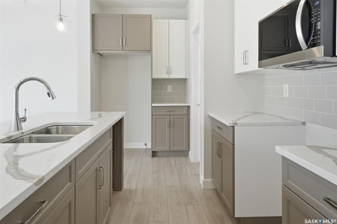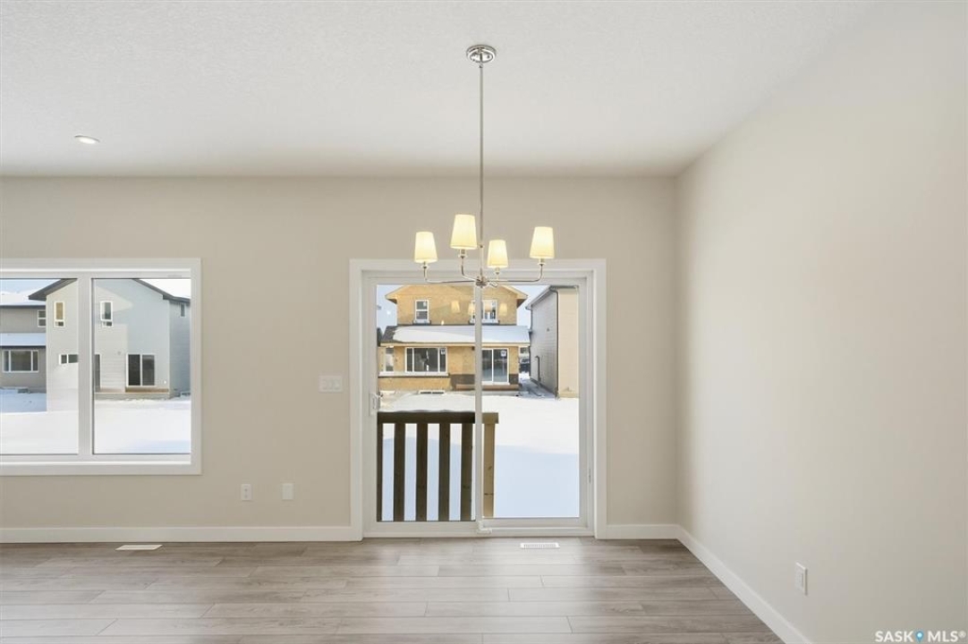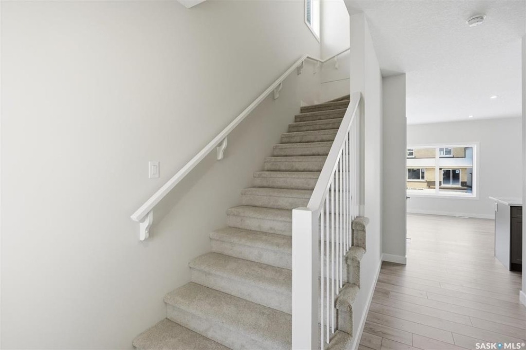 The "Oliver" by North Ridge Development Corporation is a "Suite Ready" 1501 square foot 2-Storey home located in the growing community of Brighton. A bright main floor layout featuring a large kitchen with walkthru pantry and island, dining area, living room, and 2-pce bath. Durable vinyl plank flooring in kitchen, living and dining rooms is attractive in appearance, high quality shelving in all closets and an upgraded trim package giving a fresh and modern feel along with beautiful cabinetry and quartz counter tops. The 2nd level features 3 bedrooms, a 4-piece main bathroom, and laundry. The master bedroom showcases beautifully with a 3-piece ensuite and walk-in closet. A side basement entry adds potential for future development or suite options. This home also includes a heat recovery ventilation system and high efficient furnace. GST and PST included in purchase price with applicable rebates to builder. Saskatchewan Home Warranty Premium Coverage. This home is move-in ready!