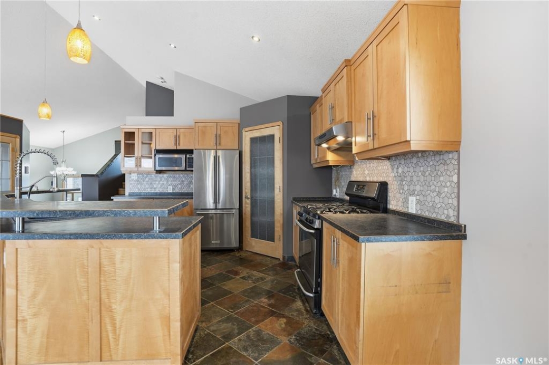 1564 sq/ft modified bi-level with double attached garage in Grand Coulee features open floor plan with high vaulted ceilings, Hardwood floors, natural gas fireplace. Abundant cabinets in Maple kitchen with eat-up bar on center island, stainless appliances, walk in pantry, swing room that could be an office, dining room or den, pot lighting, bedroom and 4 piece bath finish the main level. Primary bedroom up with spacious ensuite, featuring corner jetted, tub and separate shower, walk in closet. Huge open family room in basement, with large windows, 9 foot ceilings, pot lighting, bedroom and den (that could be another bedroom,) 3 piece bath, laundry and storage. Yard is fully fenced with Vinyl, Deck is covered, hot tub and newer vinyl Shed included. High efficiency furnace, power vent water heater, Seller believes the entire home is spray foam insulated, including rigid foam beneath basement and garage floors. Garage is insulated and heated. E.& O.E.