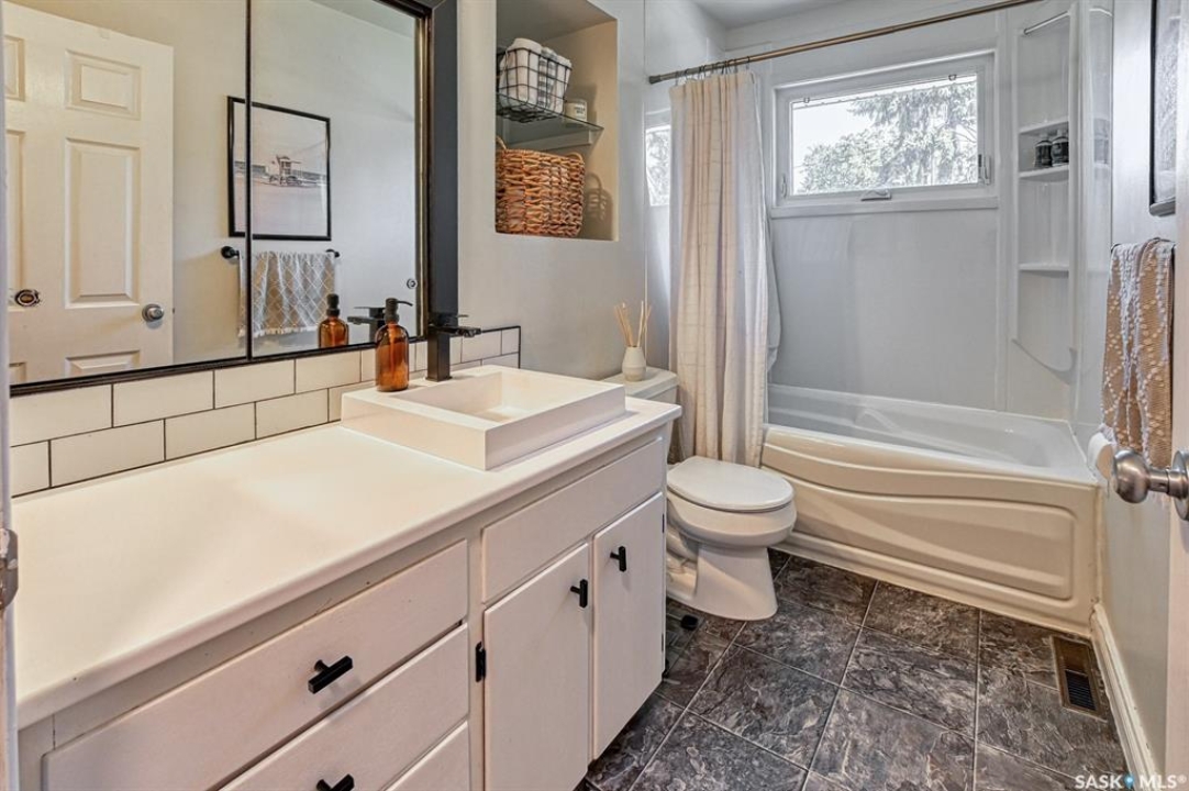 Spacious and ready to move into, this Whitmore Park three level split is fully developed and offers plenty of room for a growing family. The foyer welcomes you to enter the bright living room featuring hardwood floors. The semi-open concept main also features a large dining area and updated kitchen with plenty of cabinets. There are three good sized bedrooms on the upper level and a refreshed four piece bath. You'll appreciate the extra living space in the fully developed basement with a spacious recreation room, two piece bathroom and a large utility room. This home has central air conditioning, PVC triple pane windows, architectural style shingles, HE furnace (new in 2020) and electrical panel (new in 2020). The large backyard has a large multi-level deck, where you can enjoy the mature landscaping and privacy, features PVC fencing and offers plenty of room for a garage. Located in a family friendly neighbourhood, close to schools and parks, don't miss out on the opportunity to make it yours. Call today to book your viewing!