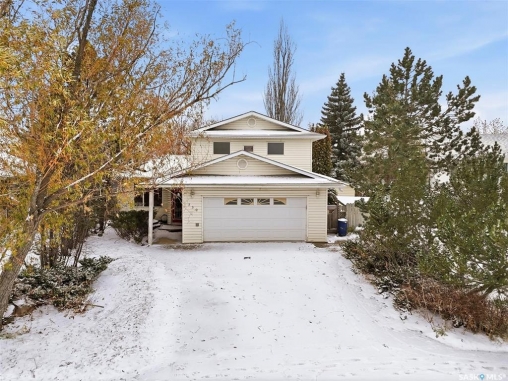 Welcome to 330 Fehr Crescent. This home is located on large pie shaped lot on a quiet crescent in Martensville. Enjoy your large back yard that is fully fenced, lots of mature trees and a large shed. The lot does have a back lane that gives you the option of rv parking and or a detached future garage. Out front you have a double interlocking block driveway that leads to the double attached garage that is heated! Once inside you will find a very spacious home that has 1820 square feet spread over two levels. The main floor has a large foyer, formal dining room, large kitchen, den, 2 piece bath and a large living room that features a gas fire place. Upstairs features a huge master bedroom with a walk in closet, gas fireplace, ensuite bathroom with a separate jetted tub! Also on the upper level is another 4 pc bathroom and two more bedrooms. The basement has a storage room, utility room and a bedroom with a walk through closet to the 4 pc ensuite. The basement could also be used as a small family room. Call today to view!!
