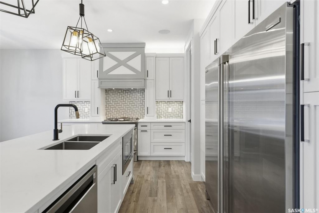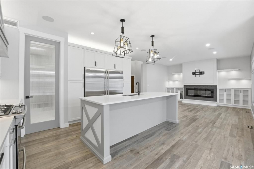 Welcome to 559 Bolstad Turn in Aspen Ridge. This is a fully upgraded, thoughtfully designed two-storey backing green space, with the kind of features you don't often see packaged together in one home. Right away, you'll notice the triple attached garage—fully finished, heated, insulated, painted, custom storage, and an epoxy floor. The surround sound system extends through all three levels of the home and even into the garage. Inside, the main floor is open and bright, with a great room overlooking the park and a dining space that walks out to a fully landscaped backyard complete with a firepit area and multiple gas lines for outdoor cooking. The chef's kitchen is a standout—quartz counters, a large island, custom range hood, upgraded appliances, and a walk-through pantry that connects directly to the mudroom. Upstairs is designed for everyday comfort. The primary bedroom features a coffered ceiling, custom built-in electric fireplace, a spacious 5-piece ensuite, and a walk-in closet. You'll also find two more bedrooms, a 4-piece bath, a bonus room with coffered ceilings, and a convenient laundry room with a sink. The fully developed basement is ready for movie nights and hosting. It includes a large family room with a projector and screen, plus a stylish wet bar with a sink and dishwasher. 559 Bolstad Turn is a rare combination of location, layout, and upgrades—move-in ready and built to enjoy for years to come.