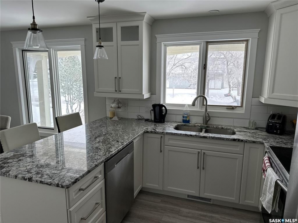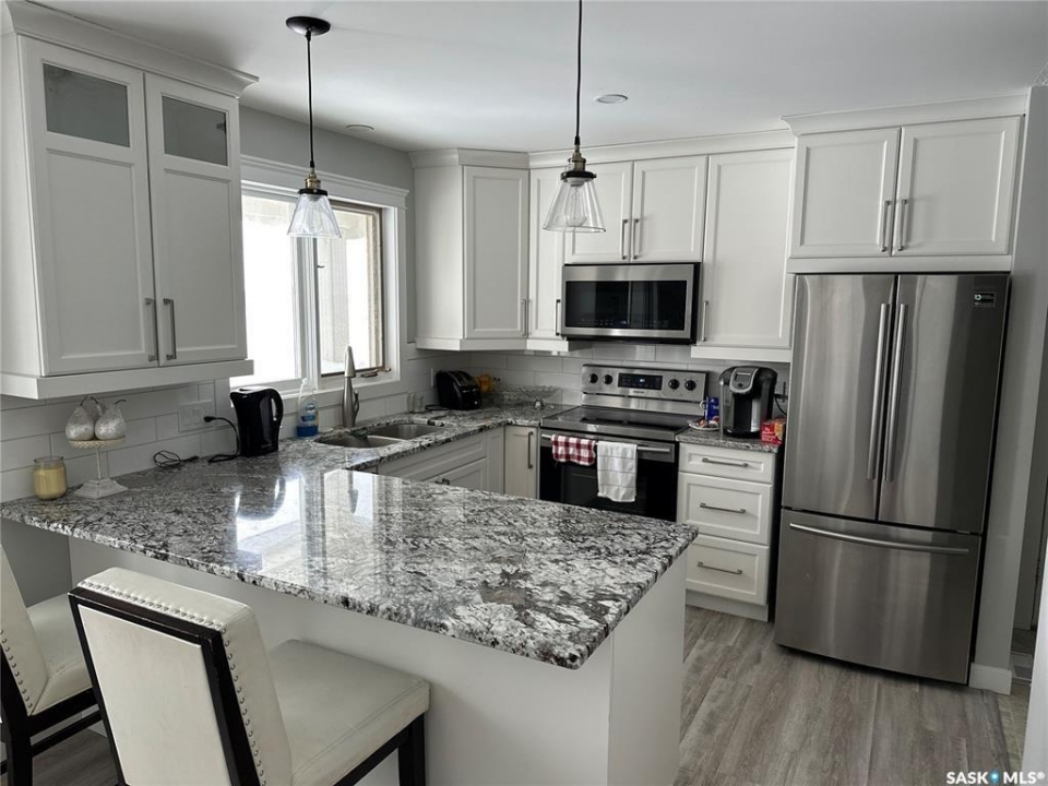 Beautifully Renovated Home with Modern Finishes and Spacious Layout! This completely renovated home, originally built in 1985, offers over 1,100 sq. ft. on each level and blends modern style with functional living spaces. Featuring an attached garage and a low-maintenance yard, this property is move-in ready and ideally located close to the local school. Inside, you'll find a stunning updated kitchen with quartz countertops, crisp white cabinetry, a stylish tile backsplash, and a center island with seating. The kitchen flows seamlessly into the dining room, creating an inviting space for everyday living and entertaining. The spacious living room offers plenty of room for relaxation. The main level includes two bedrooms, including a generous primary suite complete with a beautifully updated 3-piece ensuite featuring dual sinks. A modern 4-piece bathroom, a convenient main-floor laundry room, and a 2-piece bathroom off the mudroom add to the thoughtful layout. The fully finished basement provides even more living space with a large family room, two additional bedrooms, a 3-piece bathroom, and a dedicated storage room—perfect for growing families or guests. Outside, the low-maintenance yard and concrete driveway add convenience and curb appeal. This home offers modern upgrades, ample space, and a fantastic location—truly a must-see!