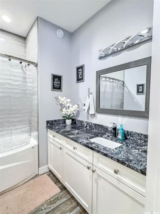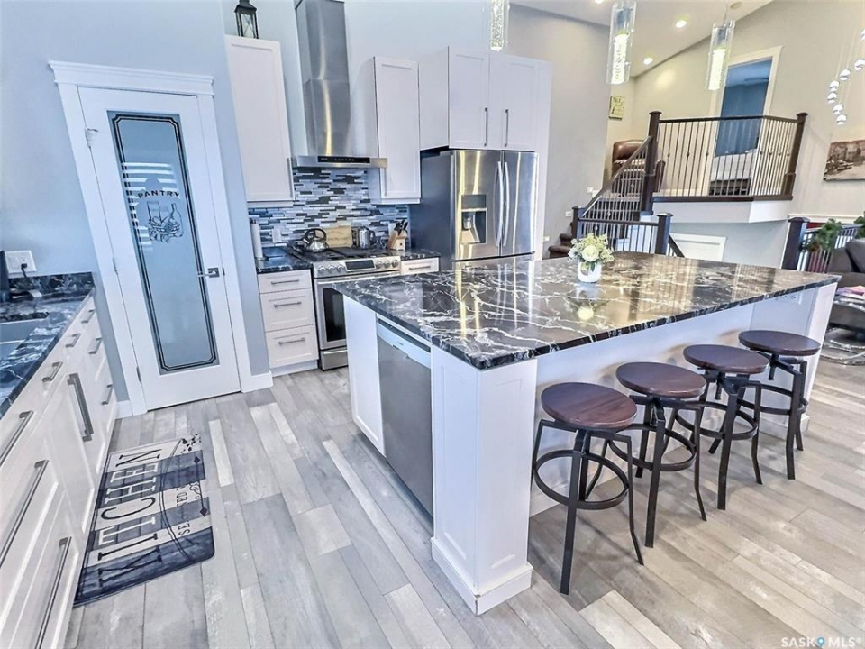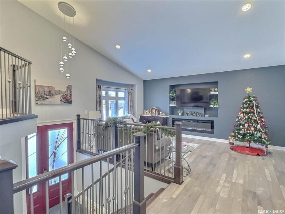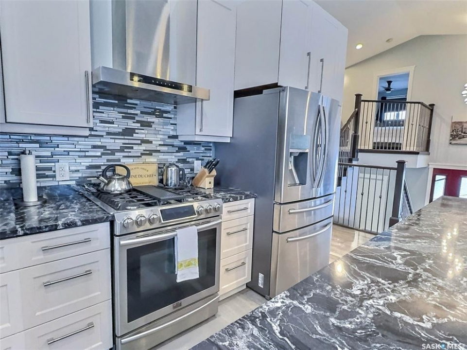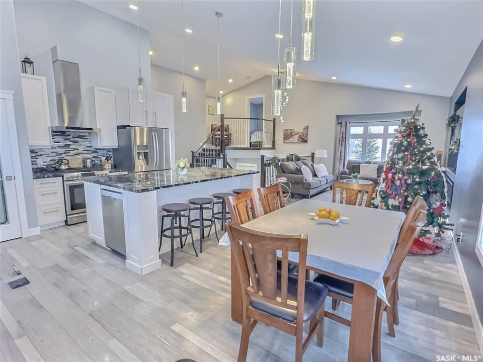 This beautiful 1,684 sq modified bi level home is everything you were hoping Santa would bring to market! Featuring 5 bedrooms, 3 bathrooms, a large 3 car attached garage, beautiful high end finishes, and located in a great neighborhood this home has everything you are wanting. Located in the prestigious Lake Estates community, this home is in close proximity to the Victoria hospital and great schools. The main level features a spacious open concept layout with vaulted ceilings, bright LED potlights and a cozy living room area with luxurious electric fireplace. The kitchen is drop dead gorgeous featuring custom white cabinetry, luxurious black & white granite countertops, stainless steel appliances with gas range, and a massive center feature island with breakfast bar seating. The main level also features 2 large bedrooms, a beautiful 4 pc bathroom with beautiful vanity, more granite countertops and tiled bathtub area. A laundry room is also located on the main level for maximum convenience. Moving to the upper level you will find a large master bedroom that includes a grand 5 pc en-suite featuring dual vanities with custom cabinetry work and a large walk in closet Stepping down into the basement you will enter the large, bright family room area that includes a fully equipped wet bar with full size fridge and more custom cabinetry work. A large 5 pc bathroom with both tub and walk in shower, 2 large bedrooms, 2 storage areas and the mechanical room complete the lower level. Outside, the covered 2 tier deck area is located just off the kitchen for outdoor cooking or stepping down for a private setting at ground level. The deck also featuring a cold storage area at ground level for all the tools and toys. The large, pie shaped yard is spacious and features plenty of seclusion with privacy blinds and a pleasing amount of space for all of your outdoor activities along with a large storage shed. Call your favorite Realtor and make this a Christmas to remember!