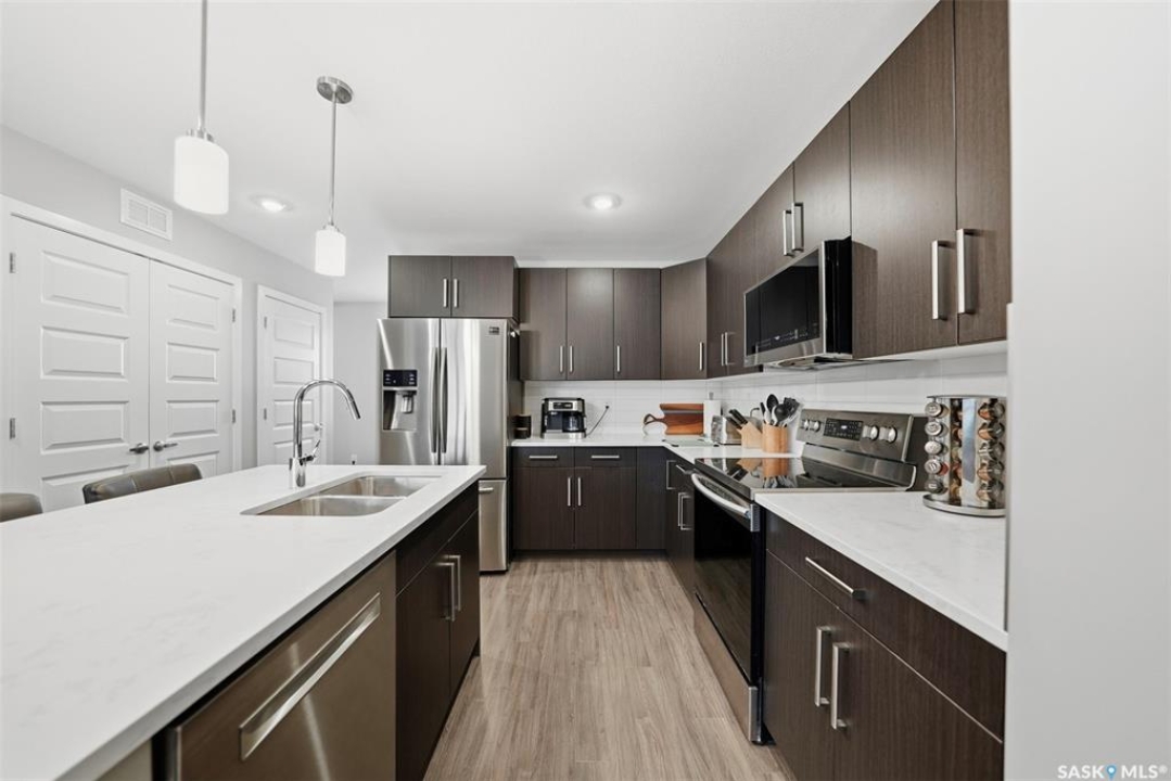 Get ready to fall in love with this gorgeous family home in Brighton, Saskatoon's fastest-growing hotspot! This community is awesome for everyone—families, singles, couples—offering tons of amenities and a great vibe. Home Highlights: This place is all about modern living. The main floor features a fantastic open-concept layout that's bright and perfect for hanging out. The kitchen features a big island, beautiful quartz countertops, and a walk-in pantry—perfect for the home chef! Forget clutter, because the back entrance has a handy mudroom with lockers and a bench. Upstairs is pure convenience. You get two spacious bedrooms, and here's the best part: each one has its own four-piece private ensuite bathroom! Plus, the laundry room is right up there, too. Downstairs, the finished basement adds a huge family room and a three-piece bathroom, giving you tons of extra space. Out back, enjoy your deck and the excellent parking setup: a double detached garage plus an extra dedicated parking spot! Brighton is the place to be—great for families, full of amenities, and totally vibrant. Ready to check out your new neighbourhood? Call your REALTOR �? to view today!