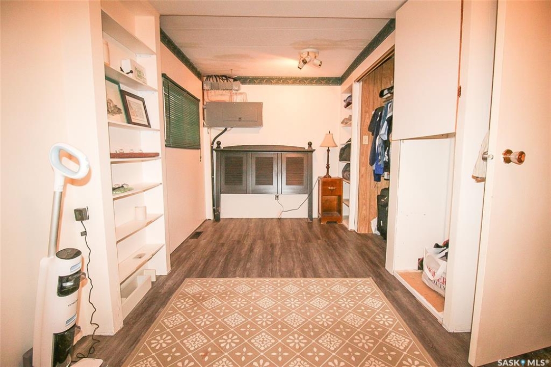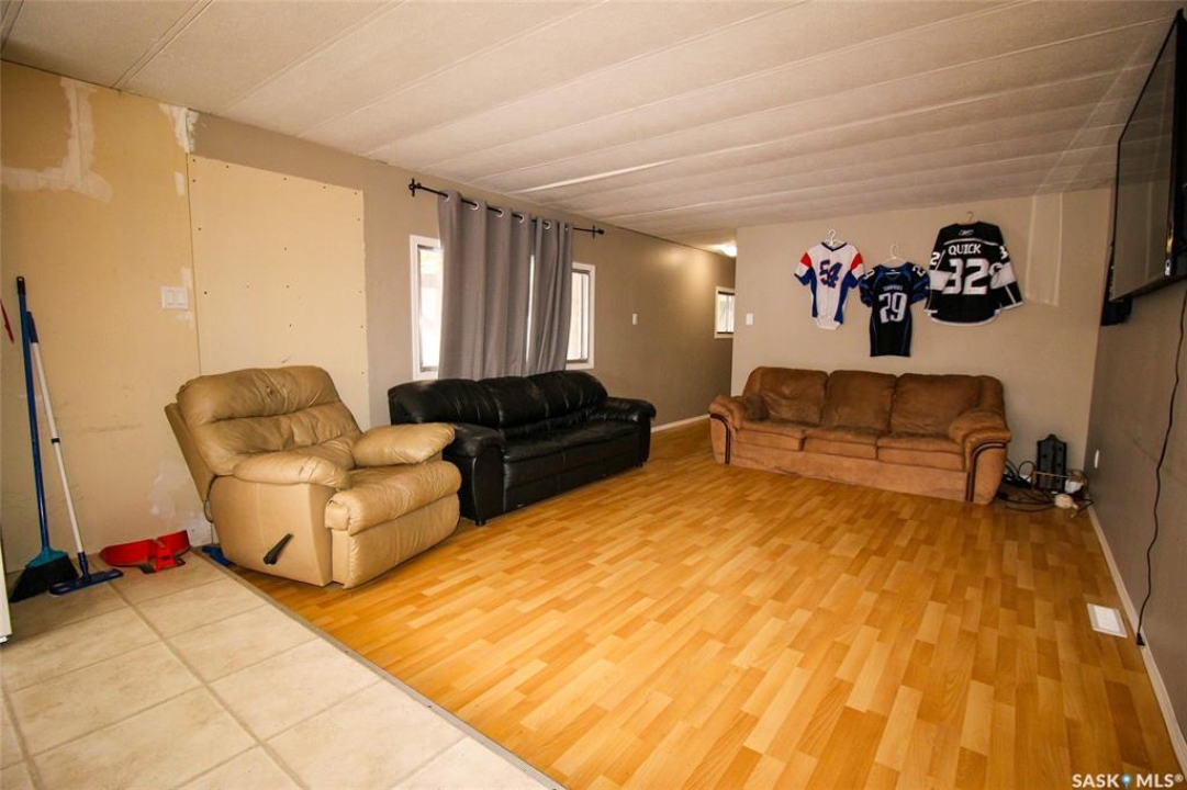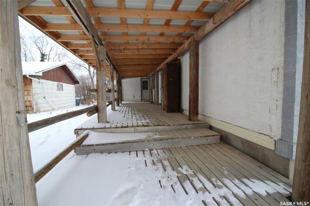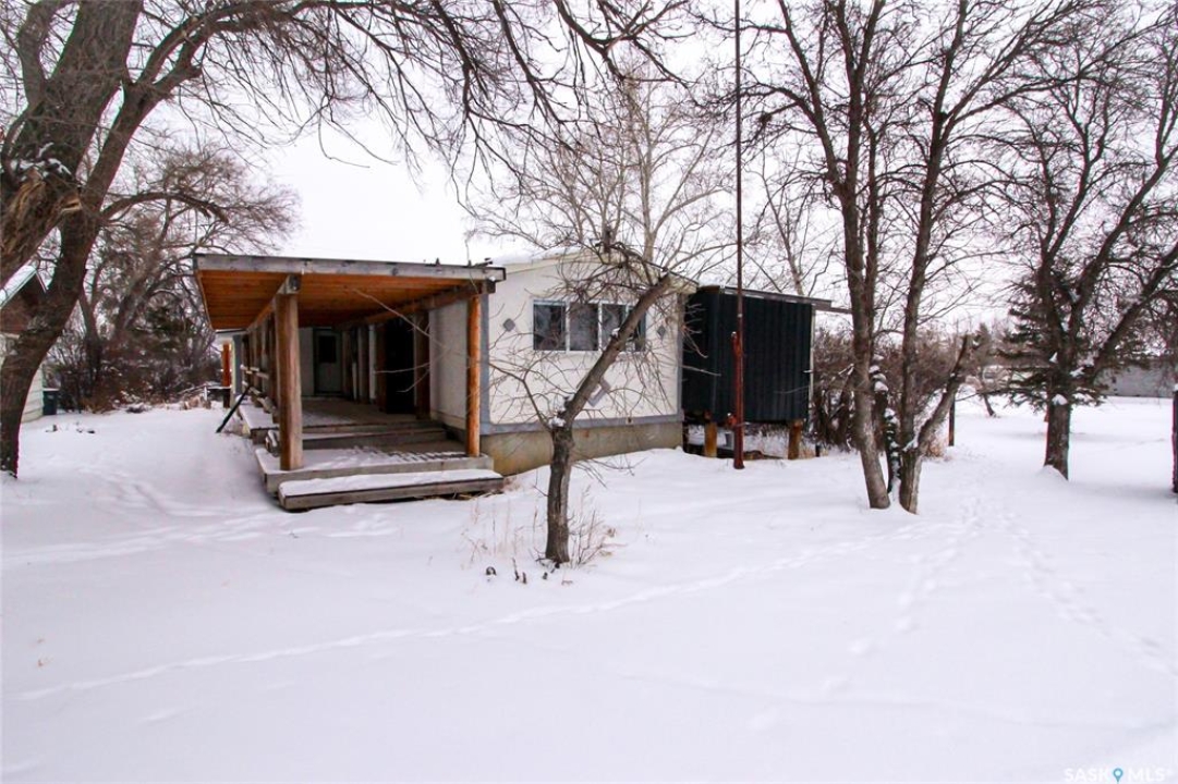 Bring your fishing rod and move into the best cottage in Simmie, SK just steps from Duncairn Dam. This property is a double lot site on a corner with all the amenities you are looking for. The home is a mobile home, set up on a full preserved wood basement. Lots of loving care has been put into this home with, upgraded electrical panel, new natural gas furnace, new hot water heater and an all metal roof. The home is pretty unassuming from the street but features two large covered decks for all of the outside enjoyment. The home has an open kitchen to living room space with neat laminate flooring and access to the deck through garden doors. There are two bedrooms with tons of closet space and the main floor bath is fully renovated with ceramic tile and a modern look. The lower level is framed out for various rooms and rough plumbed for a bathroom. With all this space, there is room to add any out building you are interested in, the current Atco Trailer on the site is slated to be moved in the spring so there is plenty of room for a garage. Affordabe and peaceful this property has location locked in and is ready for you.