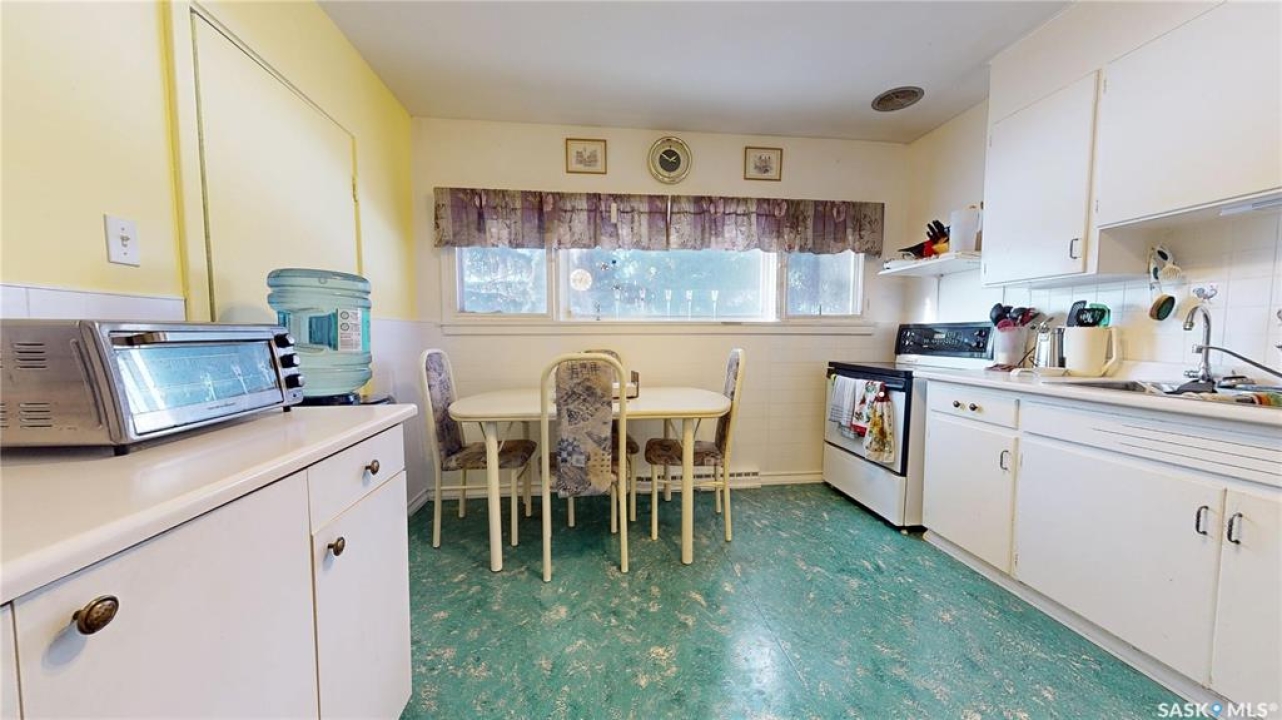 Located in Fox Valley, a quiet community in SW Saskatchewan, 1 hr from Medicine Hat, 40 min from Maple Creek and 20 min to Leader. This home offers ample space for your family or potential investment income with rental suites.. Featuring 5 bedrooms and 2 bathrooms. Originally designed as a dual purpose residence with a living space on one side and Dr office on the other. Through the South side entrance which was the living space side, there is a porch leading into the living room on one side and an office on the other. There are 2 bedrooms and 4 pc bath on this end of the home. There are original hardwood floors throughout this living space. The eat in kitchen is at the front of the home and has ample cabinets. The hallway has closets close to the entrance. You can also easily access the back yard from the split back entry or continue to the partial basement. Presently unfinished, this area could be rec space and ample storage. Continuing to the other side of the home there is a large pantry with additional cabinet storage. There is a 2 pc bath operational and another 2 pc rough in (was his/hers from dr office) which offers opportunity to expand or create en-suite from one of the bedrooms. Down this hall there are 3 more bedrooms that can be easily used as office or craft (present use). At the North end there is another front entrance/porch and a second family room space. The additional opportunity for this home is to utilize it as a multi-generational family living with the separation of space, Or create full separation with a rental suite. This home also sits an an extra large 128' X 125' fully fenced lot. There is parking at both sides with room for 4 cars/RV and room for 2 or more on the other end. Plenty of extra space for additional parking or building a large garage. The yard has multiple places to enjoy, including mature trees, a fire pit area, a play area and a patio. This property offers a unique layout with ample possibilities.