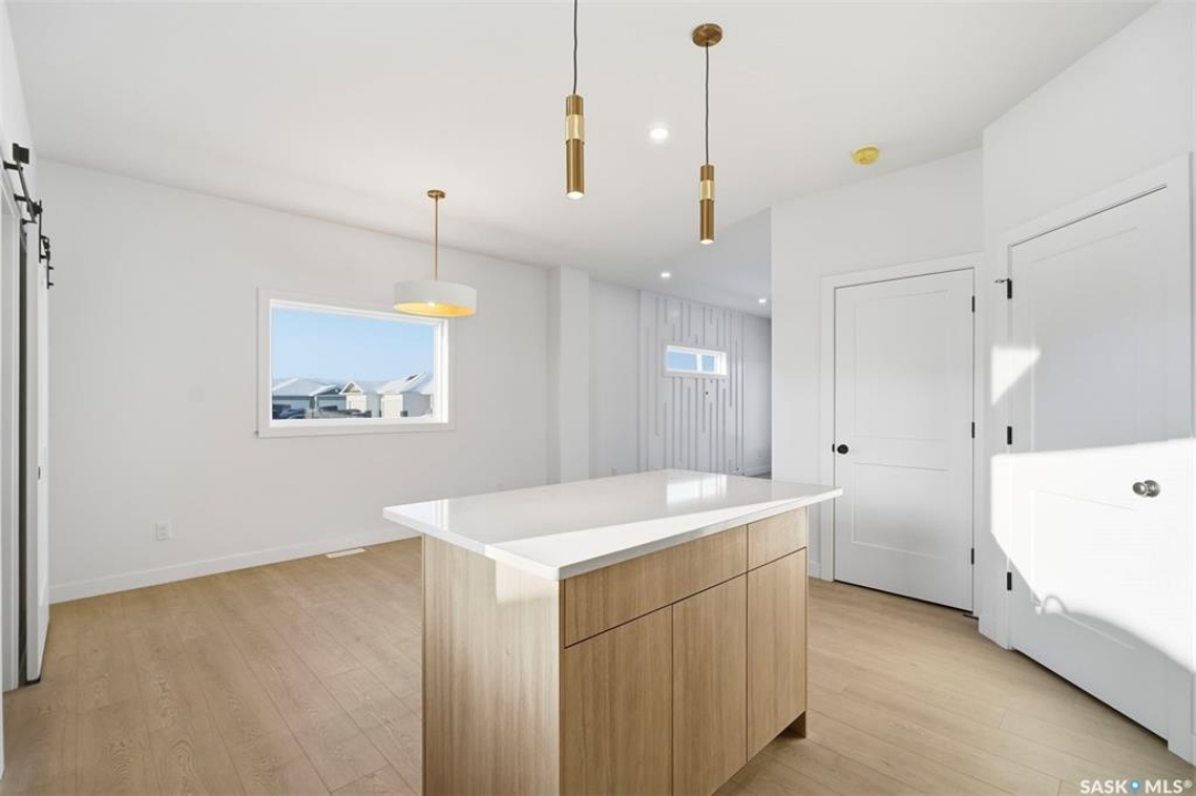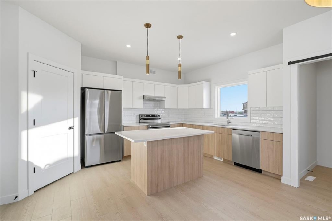 Brand New Two-Storey in Lake Vista, Martensville! Welcome to modern living in Lake Vista—Martensville's newest and most sought-after community! This brand new 1,451 sq. ft. two-storey home blends fresh, airy design with smart functionality, all just steps from scenic ponds, parks, and schools. Enjoy peace of mind with a New Home Warranty and move-in readiness in just 8-9 weeks! Features You'll Love: Bright, open-concept main floor with modern finishes Large kitchen with quartz countertops, tiled backsplash, stainless steel appliance package, oversized island & walk-in pantry 3 bedrooms upstairs, including a spacious primary suite with 3-piece ensuite and walk-in closet Convenient 2nd-floor laundry (washer & dryer included!) Stylish tile flooring in all bathrooms 3 bathrooms total throughout the home Exterior & Lot Perks: Striking curb appeal with upgraded siding, trim, and stonework Double concrete parking pad at the back with paved alley access Mudroom entry from the backyard, prepped for a future double detached garage Corner lot for extra space and light This home offers unmatched value in a prime location—perfect for families or first-time buyers looking for quality, convenience, and style. Don't miss your chance to own in Lake Vista—contact your REALTOR � today to book a private tour!