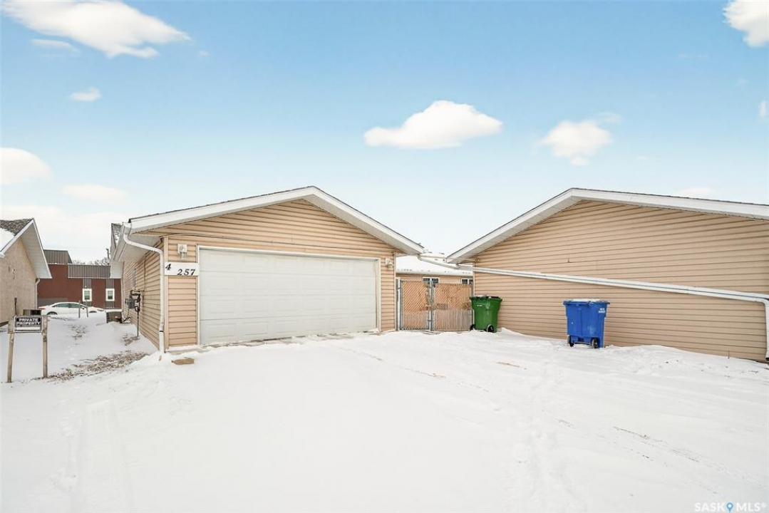 Are you looking for easy living? This beautiful condo boasts 1,176 sq.ft. of living space all on one level with a double attached garage! Excellent curb appeal as you pull up - pride of ownership shows well! Centrally located in the downtown area - making the shops a nice walk from your home! Heading inside you are greeted by a spacious foyer that opens up into a good sized living room! Heading back from there we find a spacious kitchen / dining area. You are sure to love this kitchen - boasting oak cabinets, a large island and lots of counter space! Off the kitchen you have access to your private patio area and a shared backyard! Down the hall we find a spacious bedroom at one end followed by a laundry room. Next in line we find a nice 4 piece bathroom. At the other end of the hall we have a large primary suite - complete with a walk-in closet and a 2 piece ensuite! Off the back of the home we have a double attached and heated garage which is sure to be a hit! Behind the garage is a concrete driveway with 2 more parking spots just for you! This home is ready for you to move in and relax! No more cutting grass or moving snow here! Reach out today to book your showing!