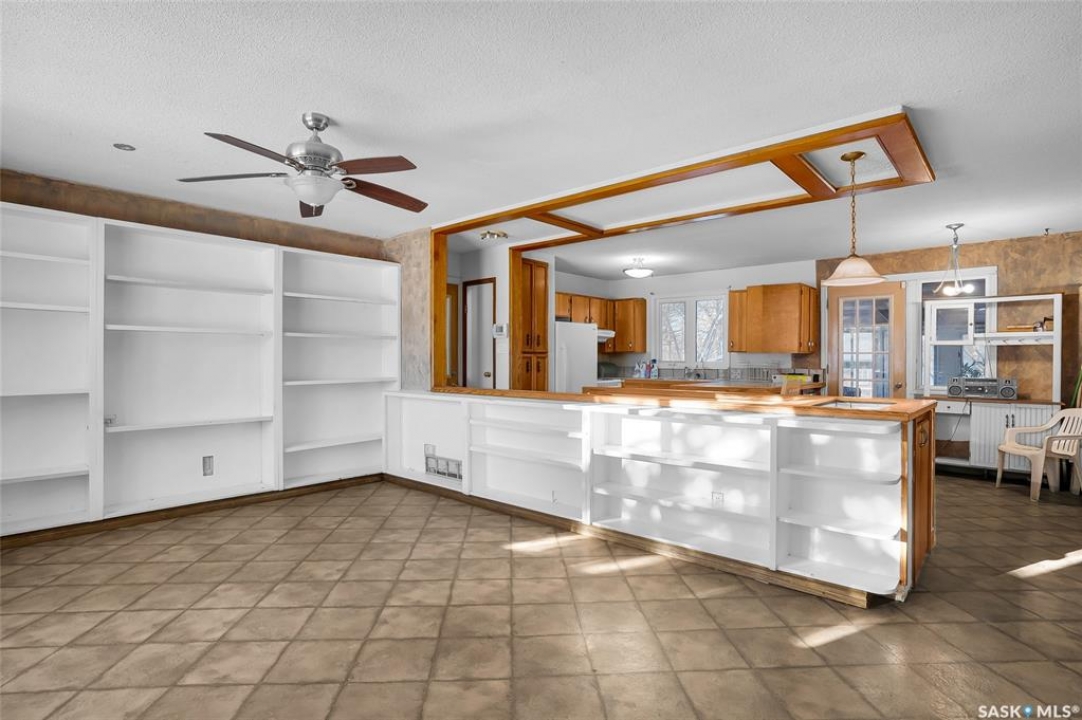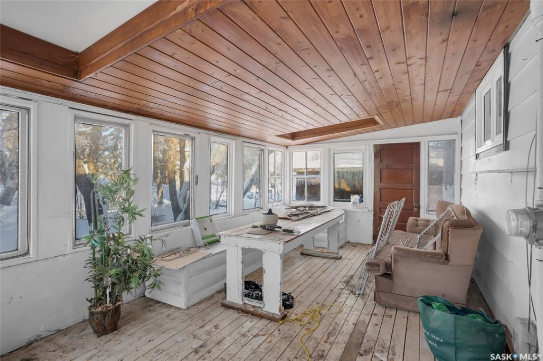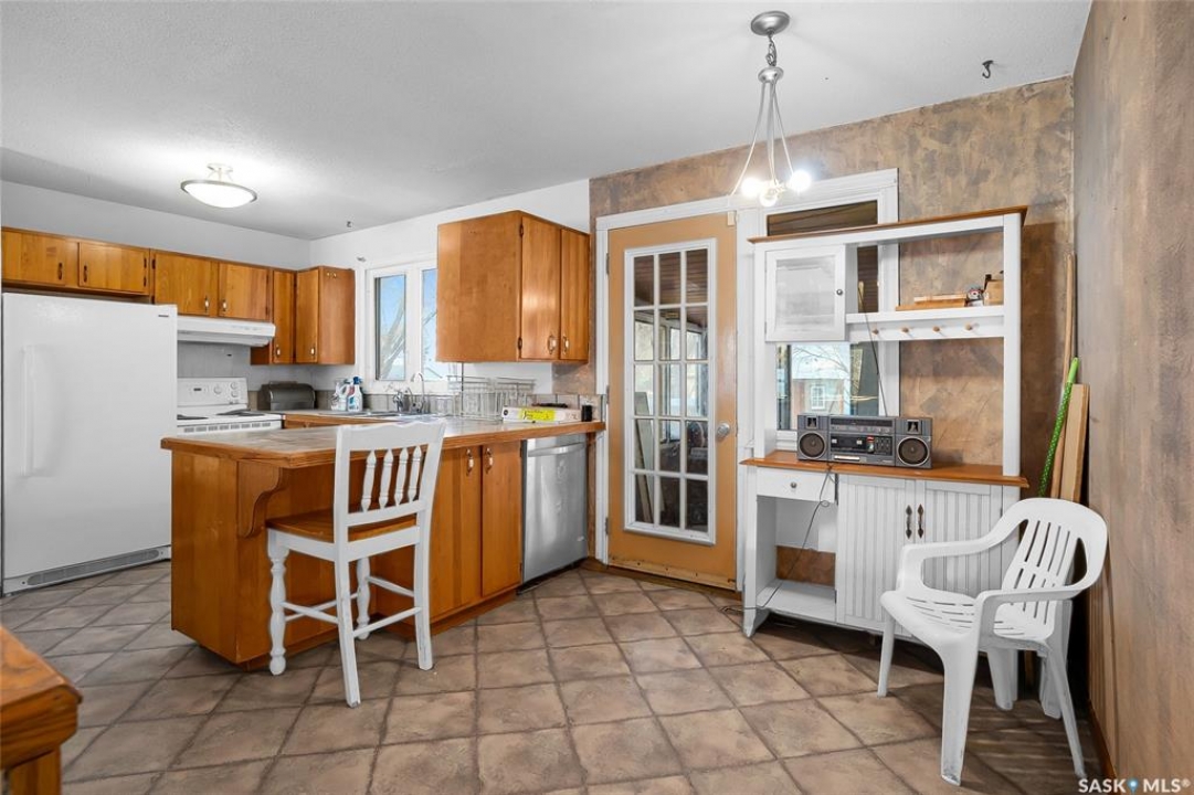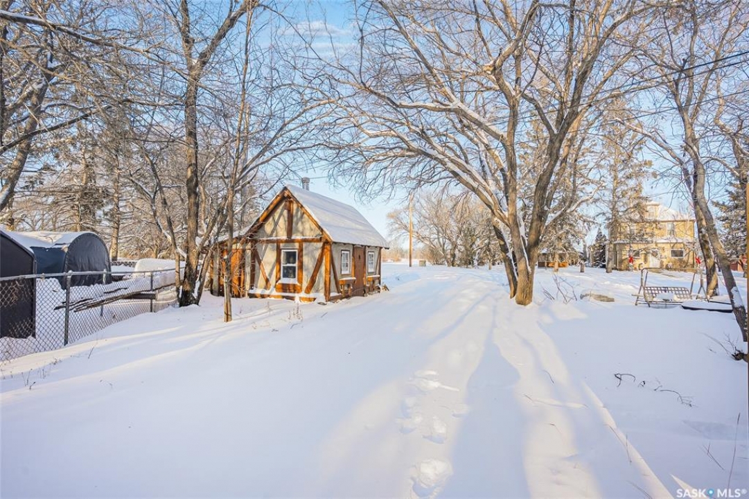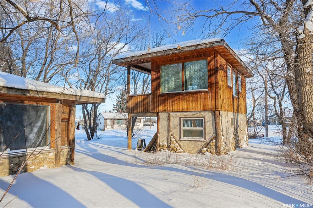 This 1,040 sq. ft. 3-bedroom bungalow on a corner lot with numerous updates and unique bonus buildings. Main floor features spacious living areas, updated kitchen (white appliances), and a bathroom with steam shower. Newly renovated basement offers a large family/rec room and new 2-piece bathroom. Home includes HE furnace, new hot water tank. Cozy enclosed porch for summer enjoyment. Property includes three additional buildings: • 66 sq. ft. cabin with wood stove and sleeping area. • 286 sq. ft. two-storey guest house with finished upper level, electricity, and space for future bathroom and kitchen. • 896 sq. ft. boathouse/garage/workshop with wood stove and greenhouse section. LARGE private backyard (23,700 sq ft ) with mature trees, fire pit, and hot tub pad. Located in Blaine Lake, “Gateway to the Lakes,” with close access to amenities and within an hour of Saskatoon, Prince Albert, and North Battleford. Your options with this property are endless and the corner lot has access from the north & south side of the property. Many options with this property .