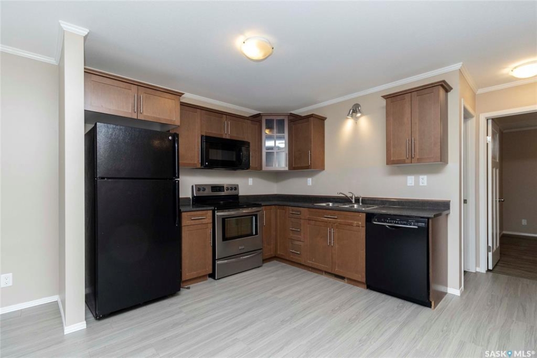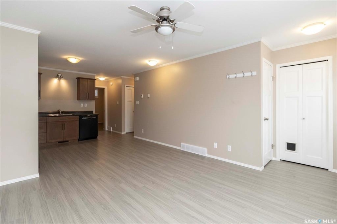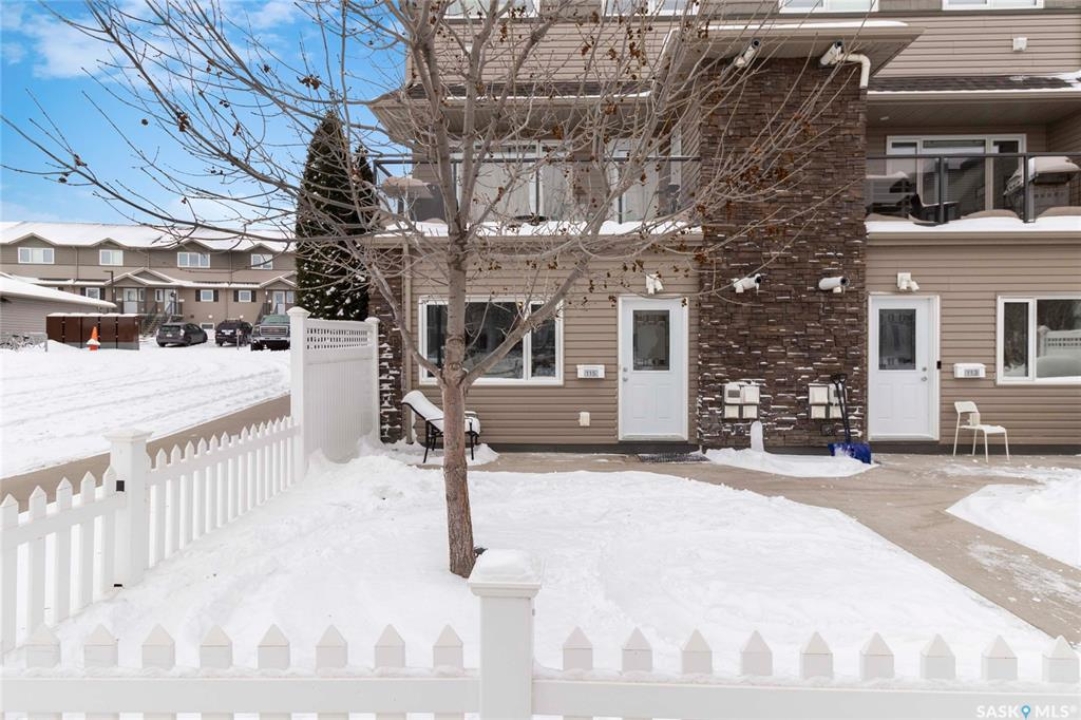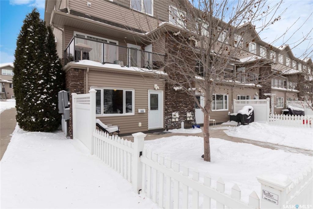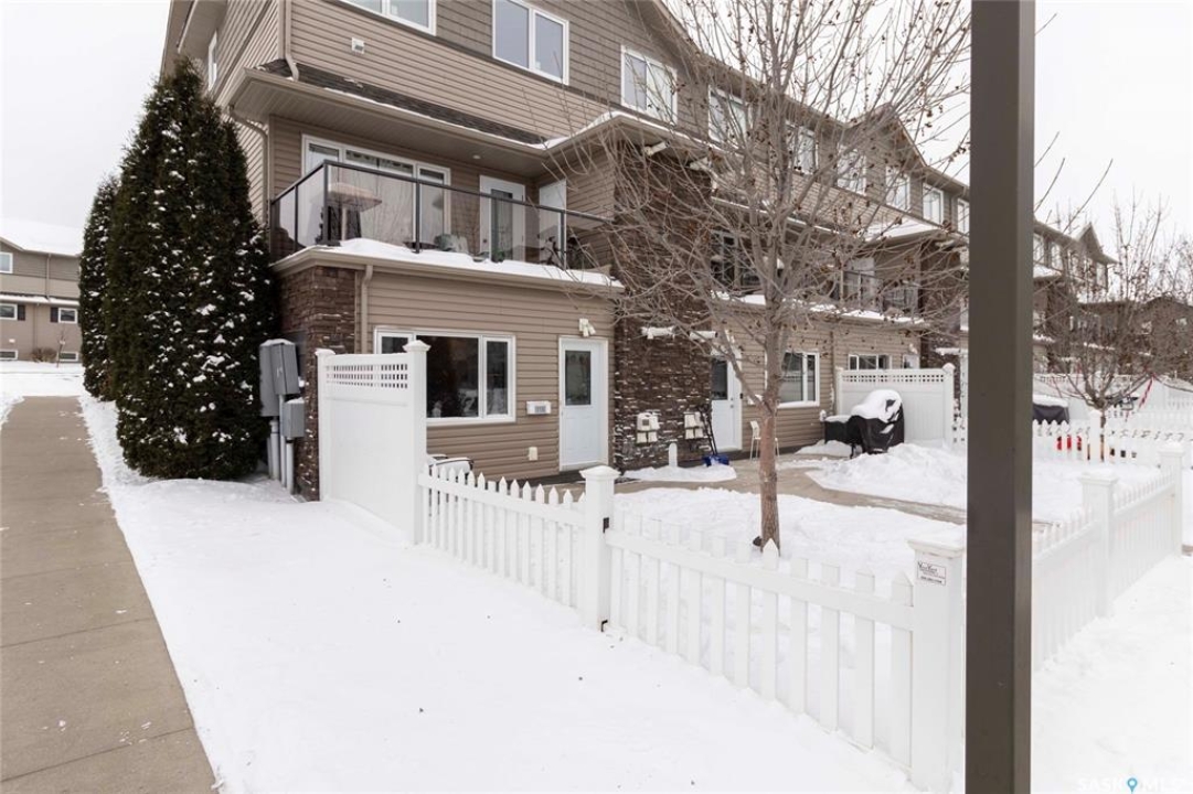 Step into contemporary comfort with this stylish “End Unit” condo nestled in the heart of Evergreen. This bright and inviting 2-bedroom, 1-bathroom home features a smart layout complete with a convenient laundry closet and an open-concept living area designed for both relaxing and entertaining. Nearly all-new flooring enhances the fresh, modern feel, while the on-demand hot water heater adds everyday efficiency. Enjoy the bonus of a designated electrified parking stall, plenty of nearby street parking, and a partially fenced yard with patio—perfect for soaking up sunny summer days and evenings. Located just steps from Evergreen Square, you'll love having shops, dining, and amenities at your doorstep, along with easy access to parks, walking paths, and schools. Offering low-maintenance living in one of Saskatoon's most desirable communities, this home is an excellent and affordable opportunity, perfectly suited for first-time buyers, students, or savvy investors alike.