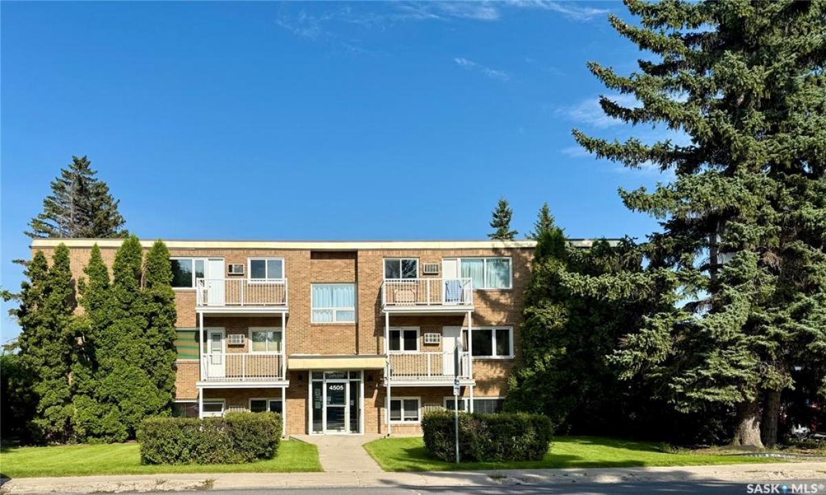 Welcome to this wonderful affordable condo in Regina's sought-after south end! Located in the quiet, well-maintained Albert Park complex, this top-floor unit offers a spacious 1-bedroom, 1-bathroom layout with its own private balcony. It includes an electrified parking stall as well. The roomy living room opens into the kitchen, making it ideal for entertaining or relaxing evenings at home. The kitchen has an eat in dining space and plenty of counter space for all your cooking needs. The oversized bedroom offers incredible flexibility – easily accommodating a home office, reading nook, or even an extra bed. The updated bathroom includes excellent built-in storage, and there's an additional in-suite storage room to keep everything neatly tucked away. This complex has been very well maintained, easily noticeable as you walk into the building. Other highlights include: newer windows, in building shared laundry, walking distance to the Southland Mall, groceries, and amenities as well as a bus stop directly in front of the building. Whether you're downsizing, purchasing your first home, or seeking a solid rental investment, this condo checks all the boxes. Pop in and take a look at this sweet gem of home - it is a wonderful find.
