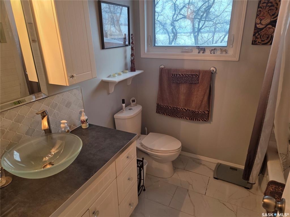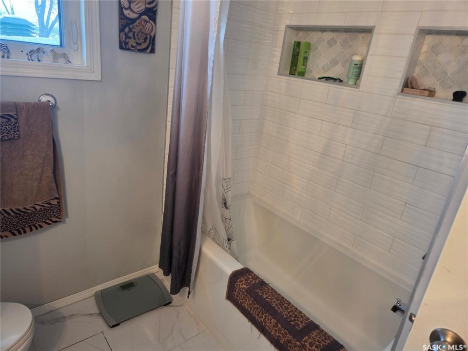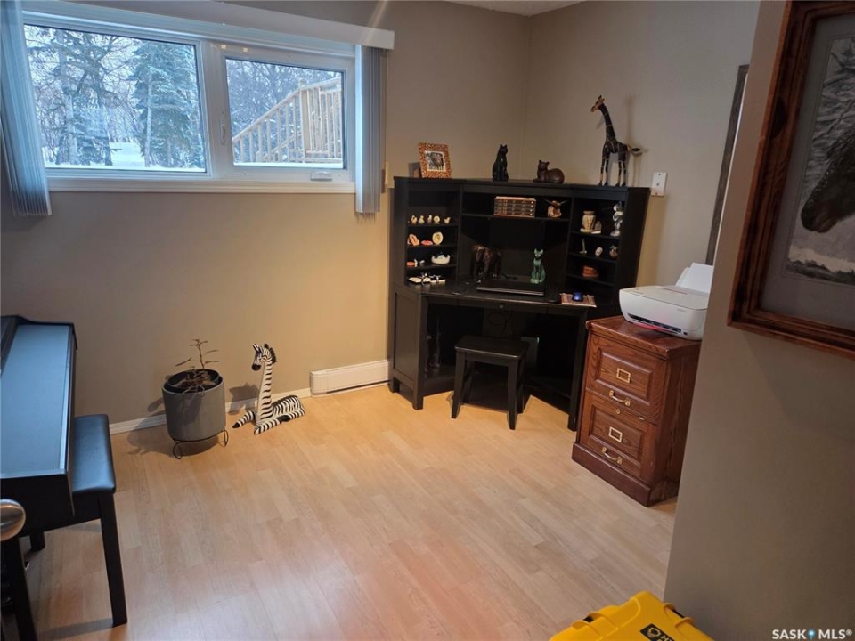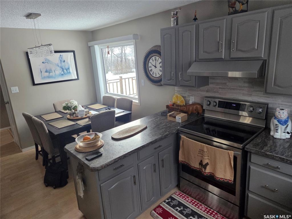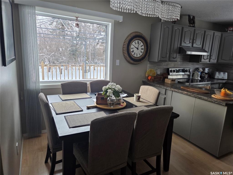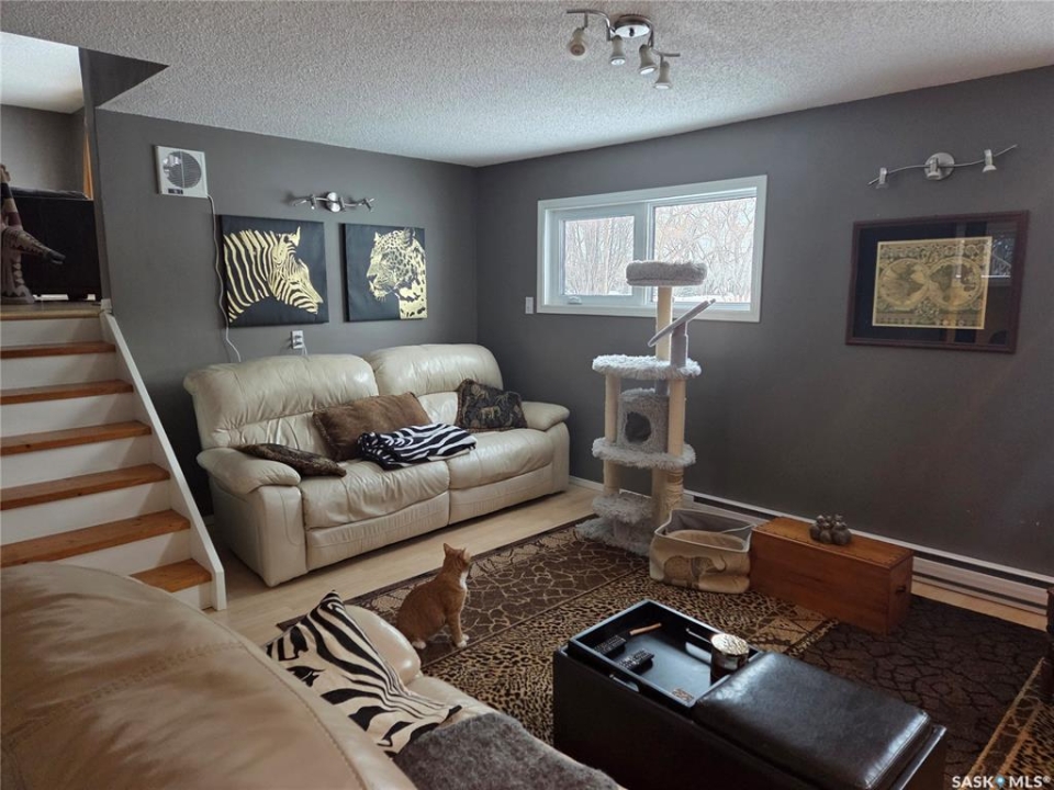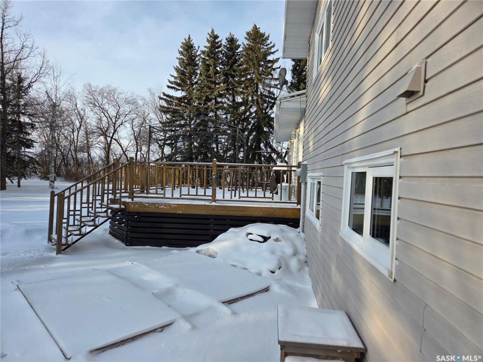 Welcome to the perfect acreage to fit anyone's needs. 5 bedrooms, 2 bathrooms, 3 living areas and plenty of storage on this 4 level split just a short 8kms from the heart of Tisdale. 3.72 acres enclosed with in a complete shelterbelt with a large storage shed, 20x30x12 tarp shed, garden area and tree house for the little ones. Large deck with covered gazebo off the back entrance, year round fish pond with fish along the patio entrance to garage, enclosed CATIO for the cats with separate house entrance and a 2 car 30x24 attached garage with built in cabinets and electric plug in heater. All appliance except bar fridge and basement freezer included (stove and hood fan new) as will the couches and electric fireplace in the basement, bed in first upper bedroom, lawn sweep and garden tiller. Sewer is by septic tank with pump out to south east, water is rural pipeline, 200 amp panel box. Sump pump pumps out far behind garage. Many many upgrades in the past years make this home ready to move in and live the life.