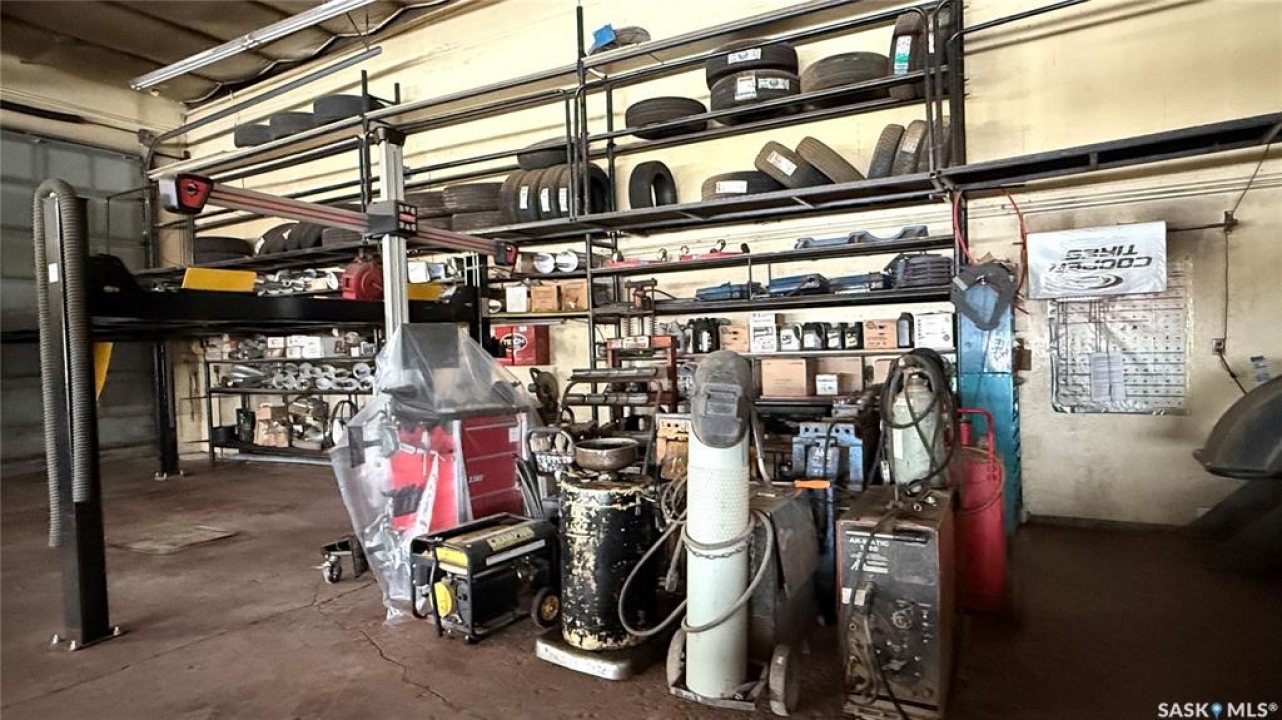 Excellent Investment Opportunity! Offering 4,716 aq. ft. of versatile commercial space. This property includes a store front and mezzanine area and a 5-bay shop. The shop is outfitted with 5 overhead doors and an array of hoists (2x14,000 lb, 2x12,000 lb, 1x10,000 lb), making it ideal for automotive or industrial use. Additional features include a security system and a storefront/office area with washroom.