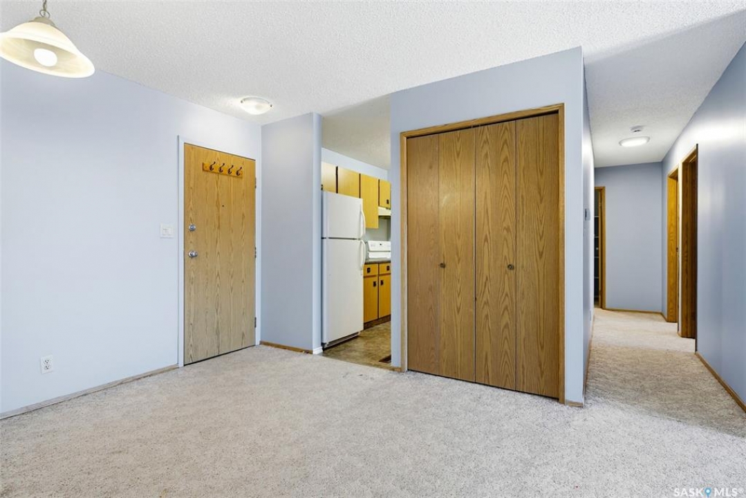 This top-floor condo, located in McCarthy Park, offers 843 sq ft of living space, featuring 2 bedrooms and 1 bathroom. The unit provides an enhanced view and a quieter living experience. It is move-in ready with upgrades that include newer countertops, windows, and patio doors. Inside, you'll find an open concept living room and dining area that leads to a refurbished balcony through patio doors. The kitchen offers ample space, and there is a convenient in-suite laundry/storage room. The full 4-piece bathroom and two spacious bedrooms complete this cozy home. This smoke-free apartment is situated in a secure, quiet building that is conveniently near parks, schools, and Rochdale amenities. The exterior of the building has been refinished with hardie board siding and features new aluminum railings on the balcony. This affordably priced property could be the perfect fit for you. Call your agent today to schedule your private viewing!