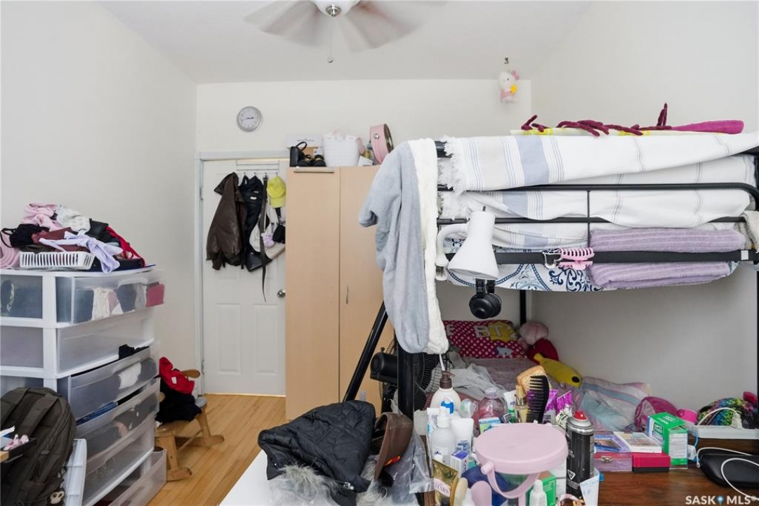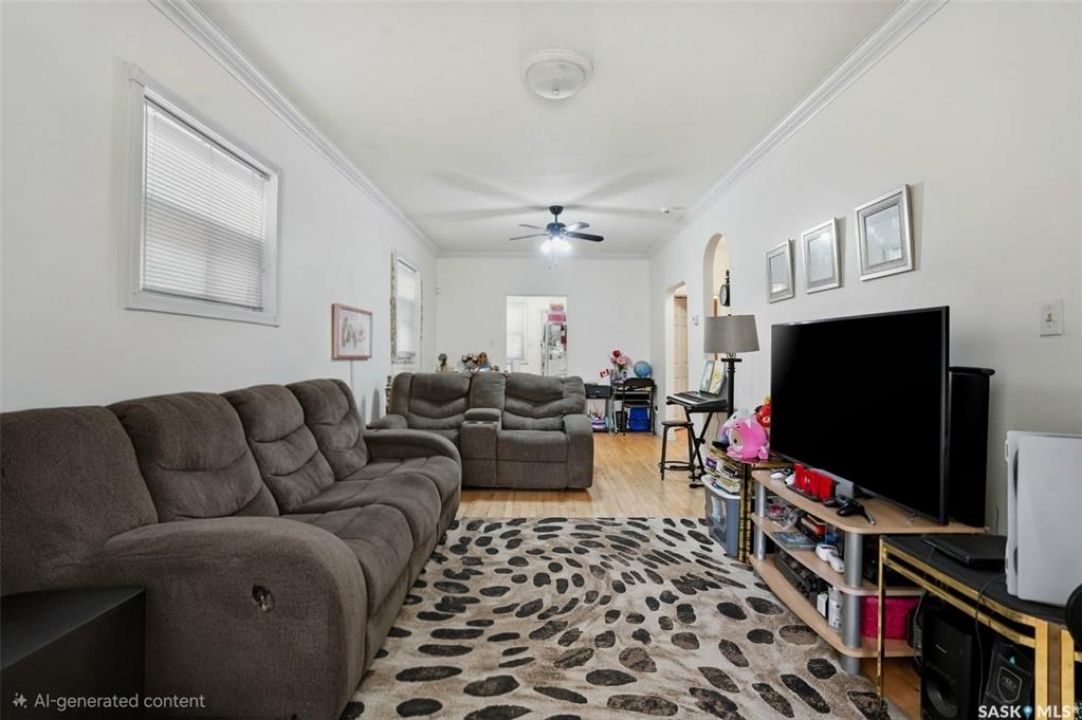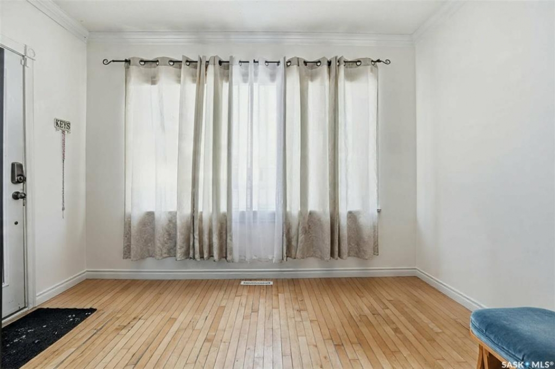 Own for Less Than Rent – Affordable, Move-In-Ready Bungalow! Why rent when you could own your own home for approximately $763/month, including mortgage and property taxes? (Estimated based on a 5-year fixed rate of 4.19% at time of listing.) A great opportunity for first-time buyers looking for affordability and long-term value. Over 800 sq. ft. bungalow features a bright main level with maple hardwood floors, 9' ceilings, crown mouldings, and rounded corners. The layout includes two spacious bedrooms, an updated 4-piece bathroom with a relaxing soaker tub and espresso vanity, a dining area, comfortable living room, and an inviting galley kitchen. The open basement is ready for future development, and the seller is including gyproc to help you get started. Outside, you'll find a fully fenced yard, a 12' x 12' deck, and convenient lane access with room to build a garage. Key updates include: Eaves, plumbing, electrical, sewer line, PVC triple-pane low-E argon windows (except front foyer) noted from a previous listing 2004. Shingles and insulated vinyl siding (2019) Located on a quiet, nice block, close to the Armories and just a few blocks from Pasqua Hospital. With low property taxes and a price that makes homeownership truly attainable, this home offers incredible value. Priced to sell—book your viewing today!